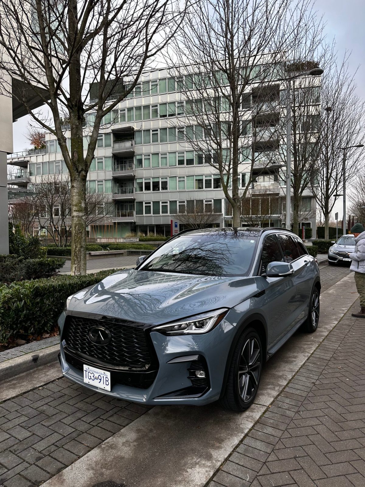 This week we were on the road with the 2023 Infiniti QX50 Sport, in this soft suede grey-blue hue. This is a sportier take one of the luxury brand’s SUVs. The sculpted lines, its swooping curves, and wide dynamic stance is what sets it apart and makes it memorable.