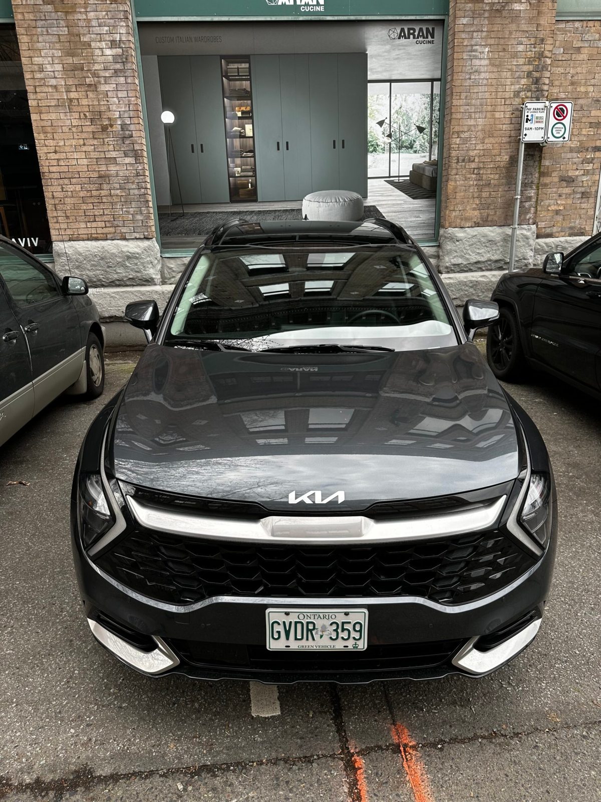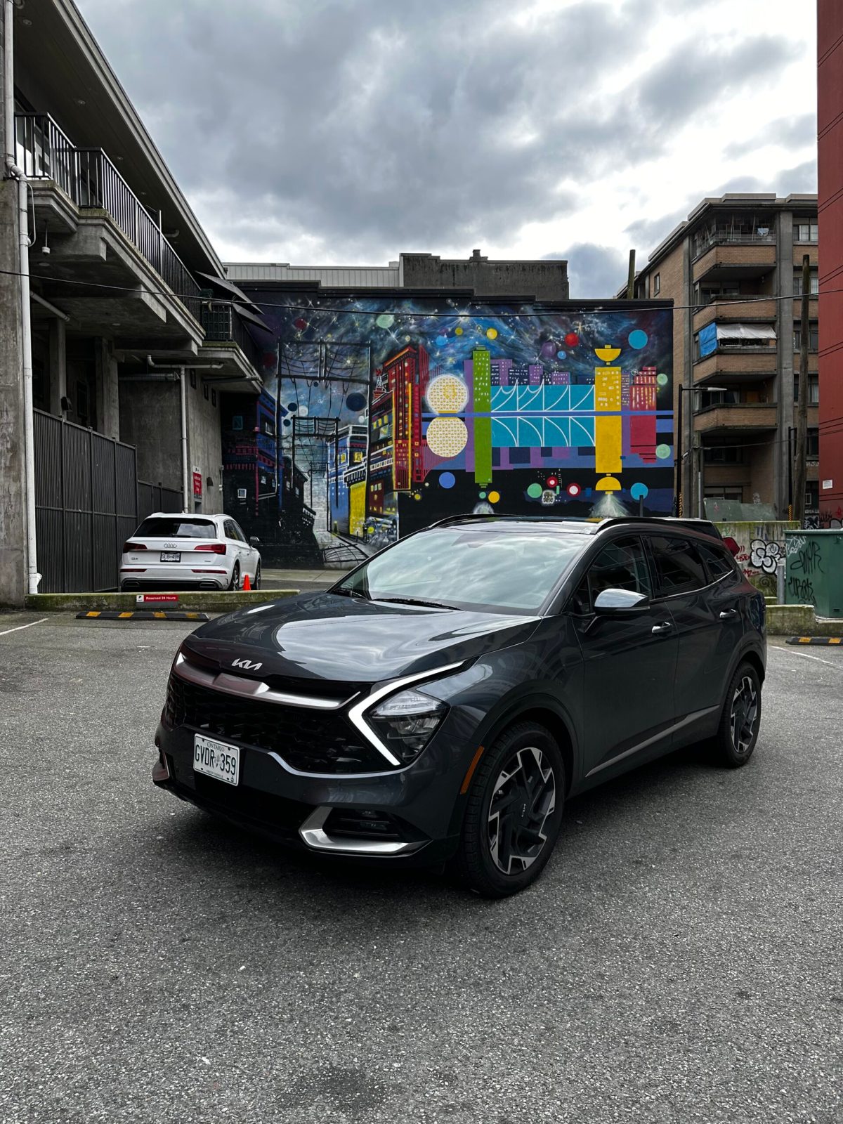 This week we were behind the wheel of the handsome Kia Sportage PHEV Ex Premium edition. From the size and length it looks like it would be a 7 seater. But this stylish sedan was as modern and sleek in the interior as it was from the exterior. Black on black, on tonal black. Faux leather seats, textured leather panels, and carbon fibre patterned detailing. I liked the ergonomic hooked door handle. By appearance only it reminded me of the top of a shovel, but definitely a lot sleeker. Under it. on the arm rest was a little ledge that you could tug on to pull the door close towards you. These we such thoughtful features that I started to associate the Sportage with as it puts the daily driver’s comfort in mind.