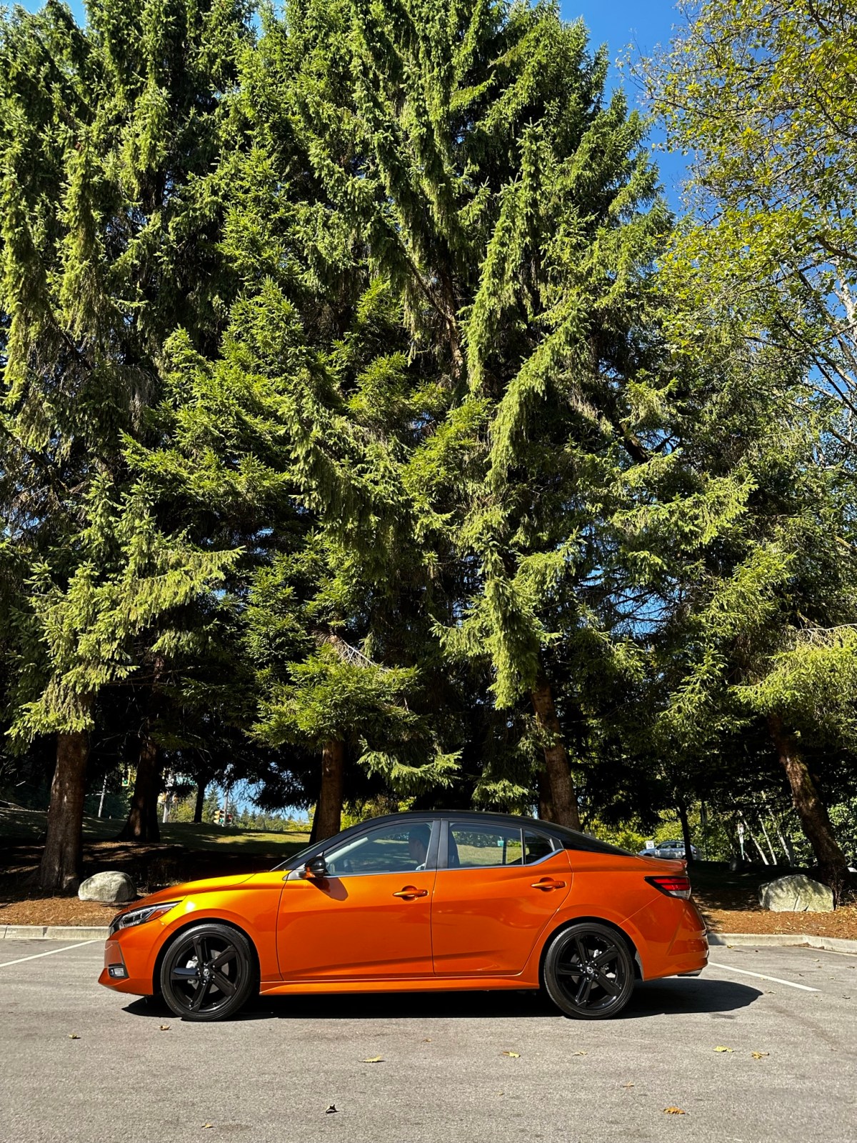 This week we were sporting the 2023 Nissan Sentra 2.0 SR CVT with its striking burnt orange shell, lowered stance, and eye catching edges. The latter includes a stylish fender that adds a sporty appeal to the frame of this city sedan; especially when paired with the all gloss black rims. A great trim makes all the difference and this was a great example.