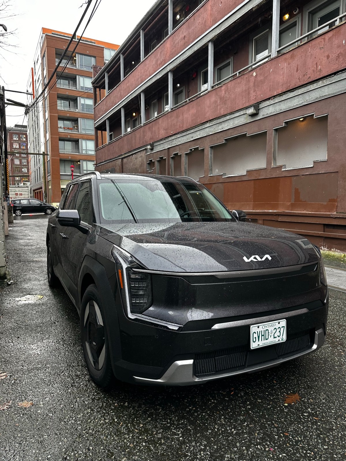 This weekend we had the 2024 Kia EV9 Land AWD. The unexpectedly fully electric SUV in the shell of a tank. Its bodywork of linear lines had it looking like folded origami, with large tires and wide wheel spokes. A full 7 seater with easy fold down second row and a pull and release strap for the third, thus allowing for generous storage.