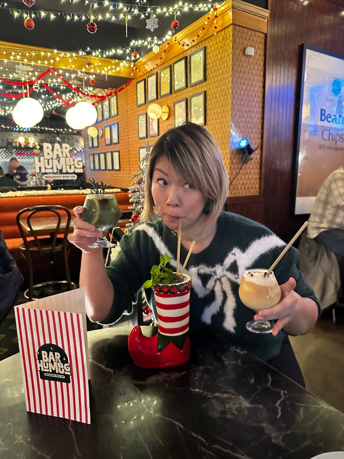 Not often seen on many holiday drink menus is the option for shots. At Bar Humbug they have 4 different flavours to have the group buying several rounds, each in a Santa’s boot shaped mini glass.