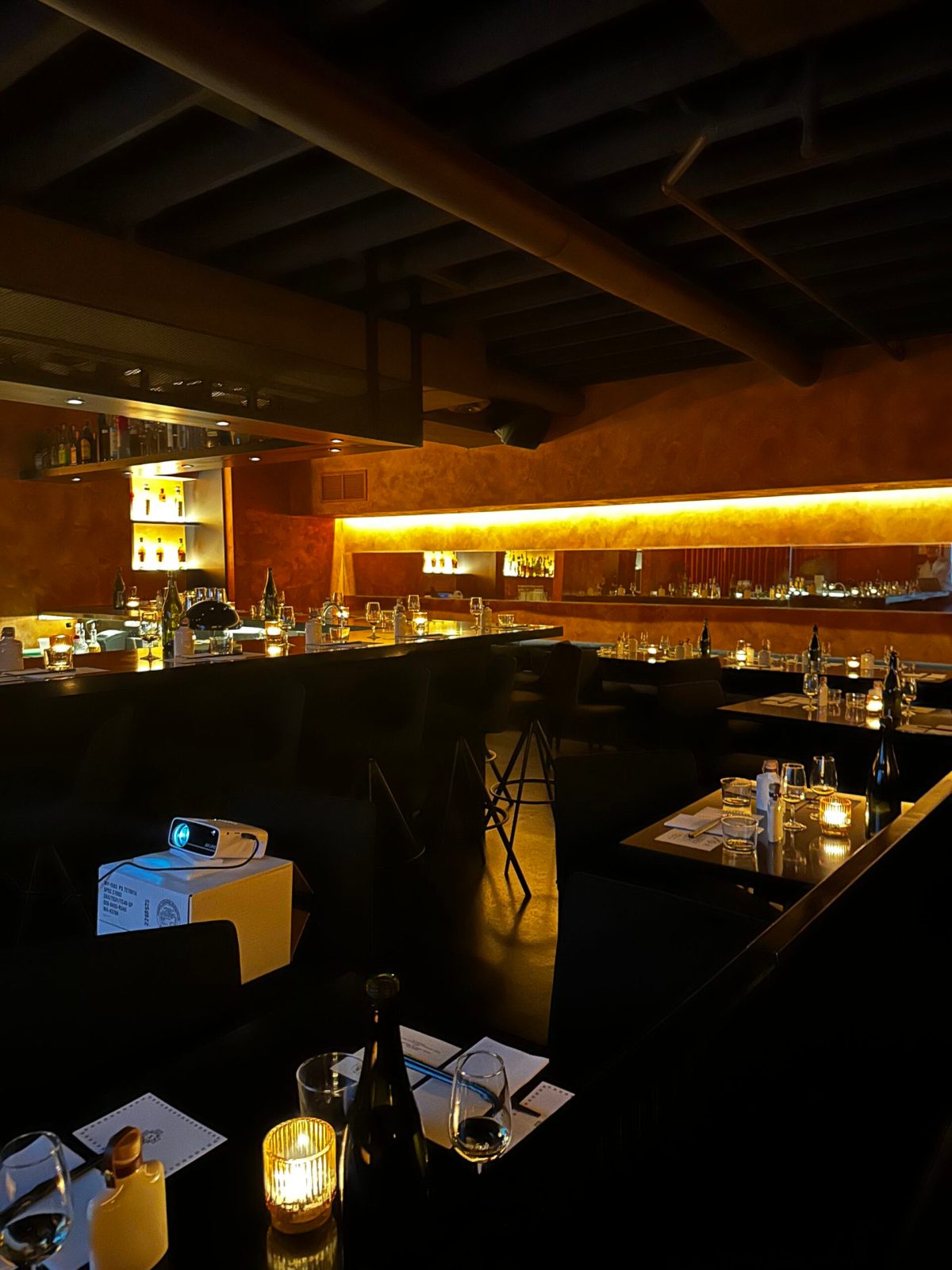 The space unexpectedly opens up, kept dark with the dim glow of golden lights. Walls become shelves to house back lit bottles of premium spirits. This was the ideal setting for an intimate seminar on Basbas.