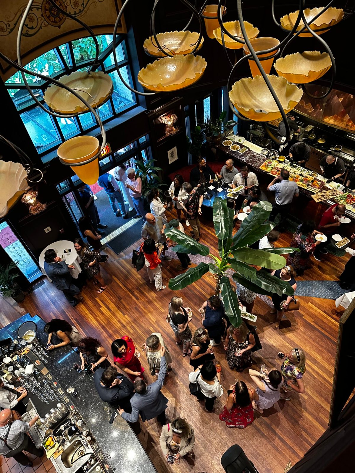 For the best view of this, be sure head upstairs for a bird’s eye perch of everything down below. This including the bar, doling out cocktails and the stations of help yourself glasses of wine.