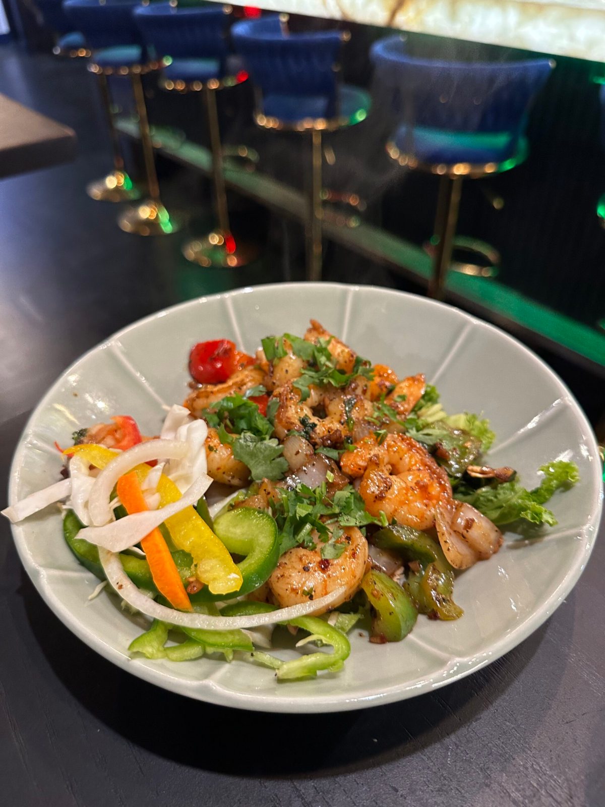 Wok-tossed prawns with salt and pepper, zesty with sweet peppers and crisp shredded vegetable that added some freshness into the mix. Not traditionally Indian in cuisine, but a tasty appetizer nonetheless.