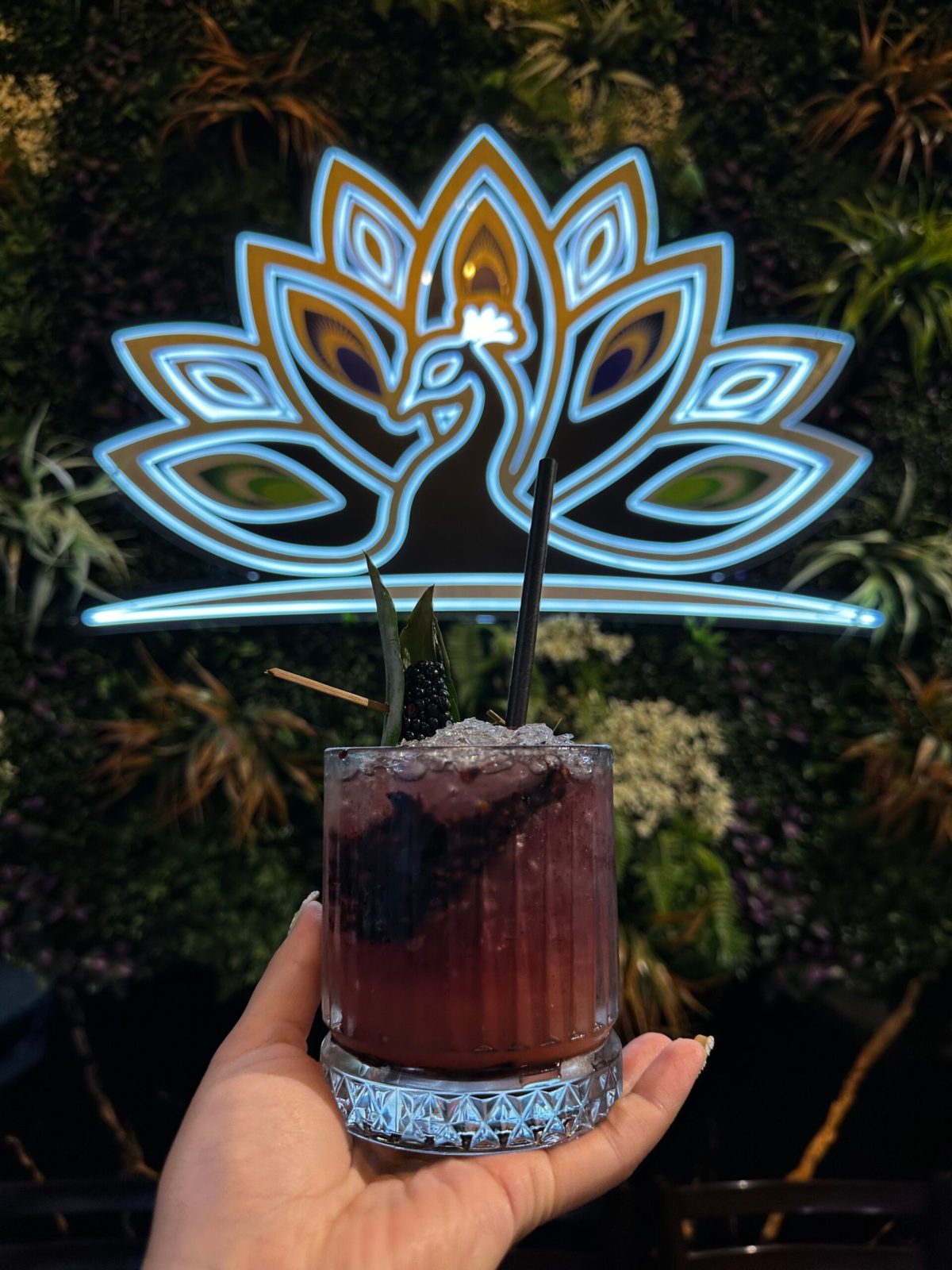 The space gets better the further in you walk through its narrow space. Decorated rich in tropical plans, marble tables, neon lights, and floor to ceiling murals of exotic animals.