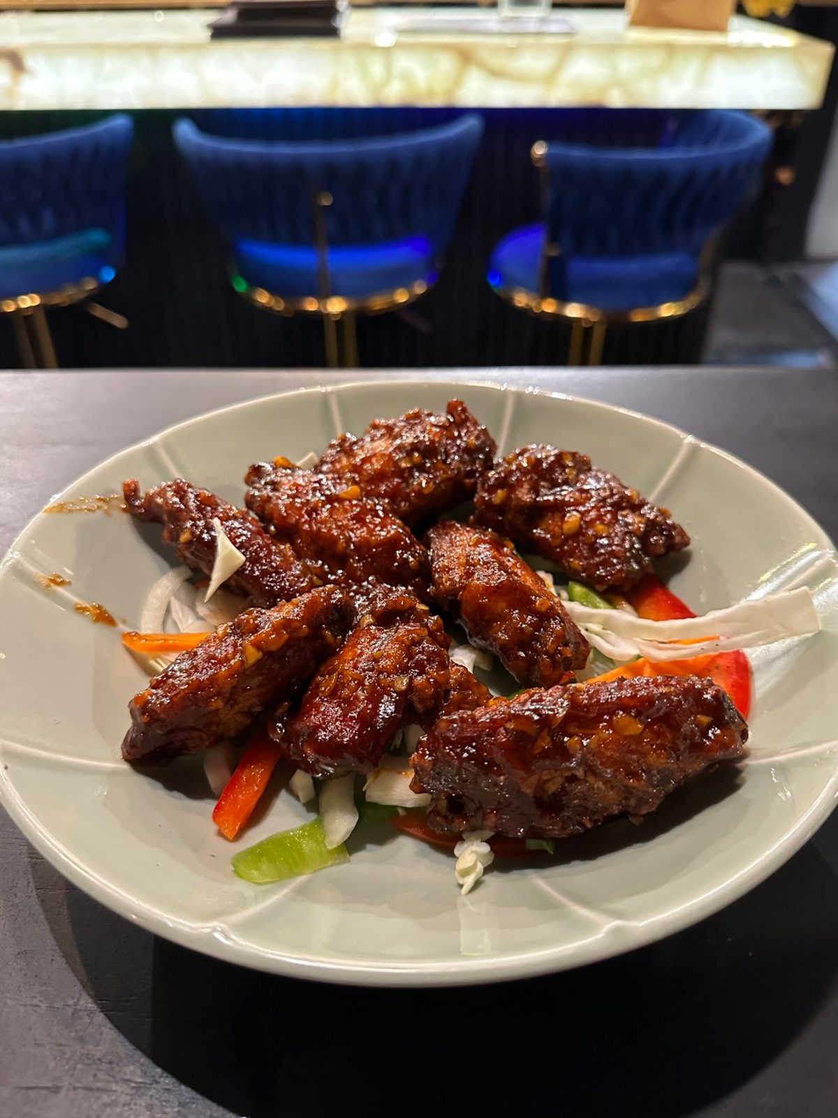 The bar is especially stunning in gold with a back lit counter, centred around a colourful male peacock print. They have some decorative cocktails to match, but none really rallying up to the same splendour. This is where we started.