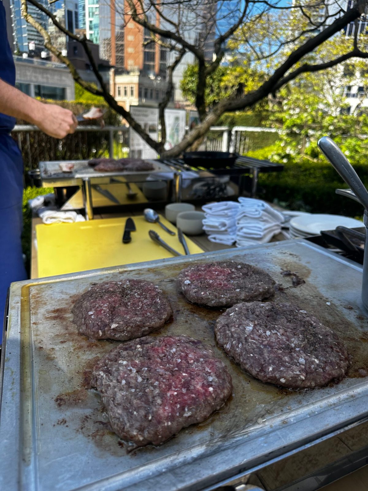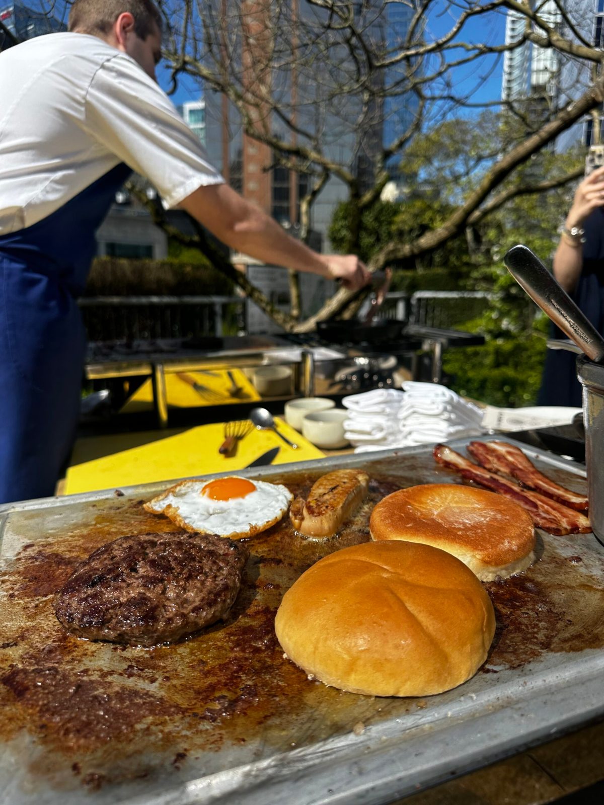 And amongst it all was Chef Adam Middleton, set up with a portable kitchen that included a butane stove top and cast iron griddles. He was ready and prepared to present a hands-on demo of how they create this “viral” burger.