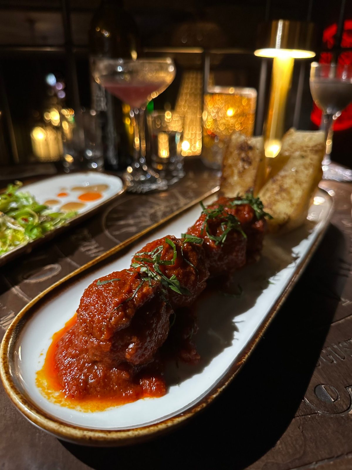 Our visit coincided with the start of Capricorn season, so they have a new cocktail to celebrate. We started with that. This is the Capricorn G.O.A.T. Described as being savoury, bright, and adventurous. Clarified goat milk, orange liqueur, acidified lacto-fer-mented tomato marinara, and Teremana tequila.