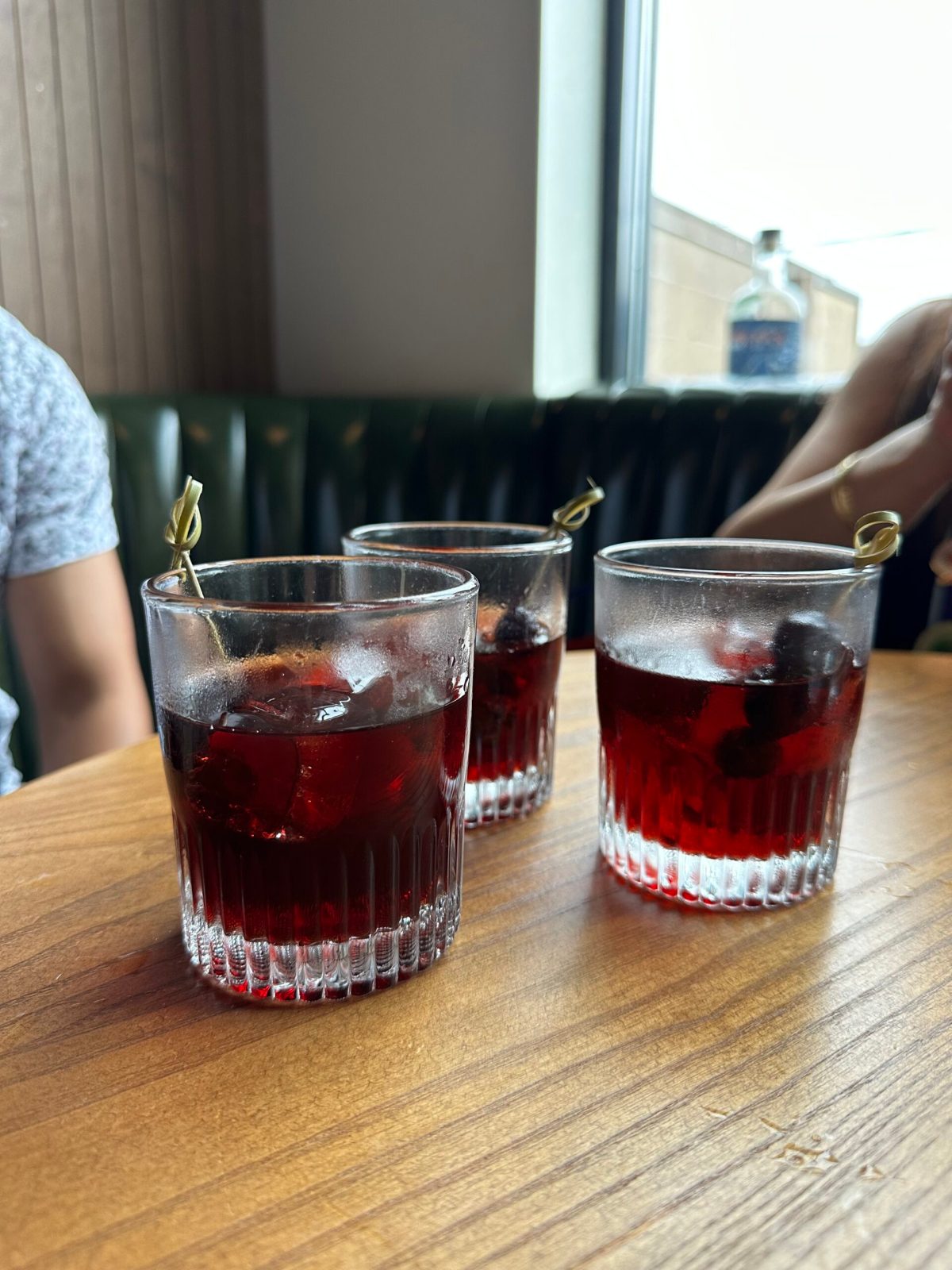 The first cocktail was Audécious Vodka, Amer Picon, honey, citrus, and Pol Remy.