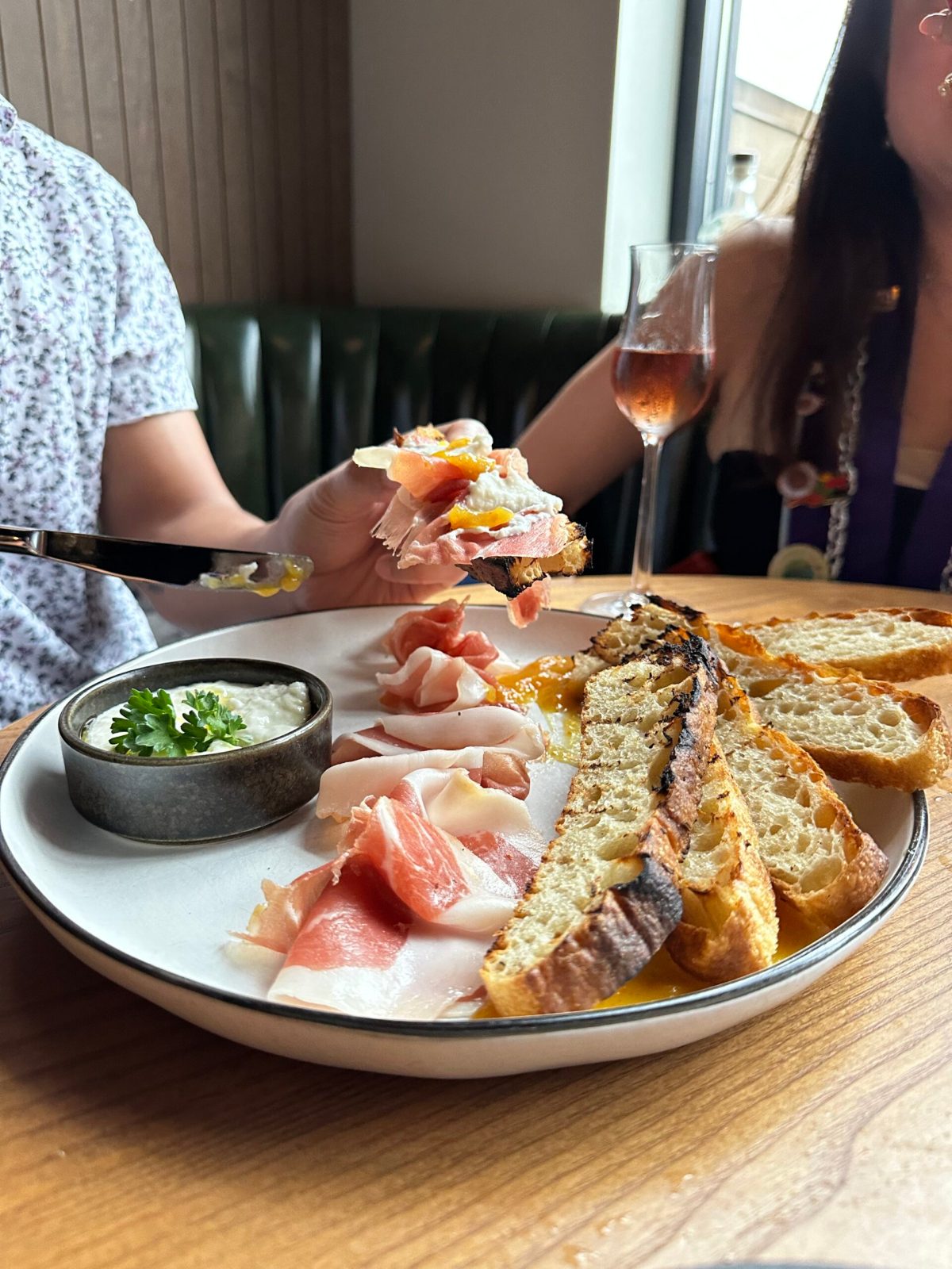 Whipped Burrata, Prosciutto, and House Focaccia. Delicious and elegant on its own, but not with the intended cocktail. I just don’t see the drinking together. At most, a reach of chocolate notes in the beverage with the salty ham.