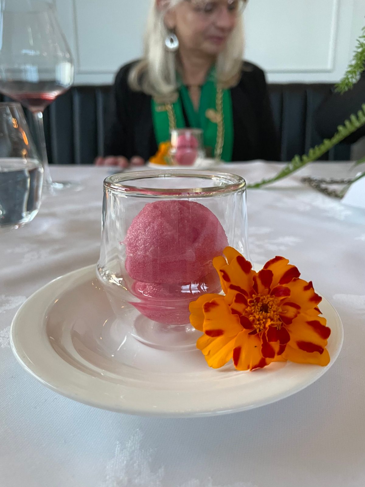 In between courses we had a lovely Roselle sorbet as our second punctuating palate cleanser. Hibiscus roselle tea brewed in house and made with fresh squeezed lime juice and organic coconut sugar. Tart and tangy, bright and crisp, this did the trick.
