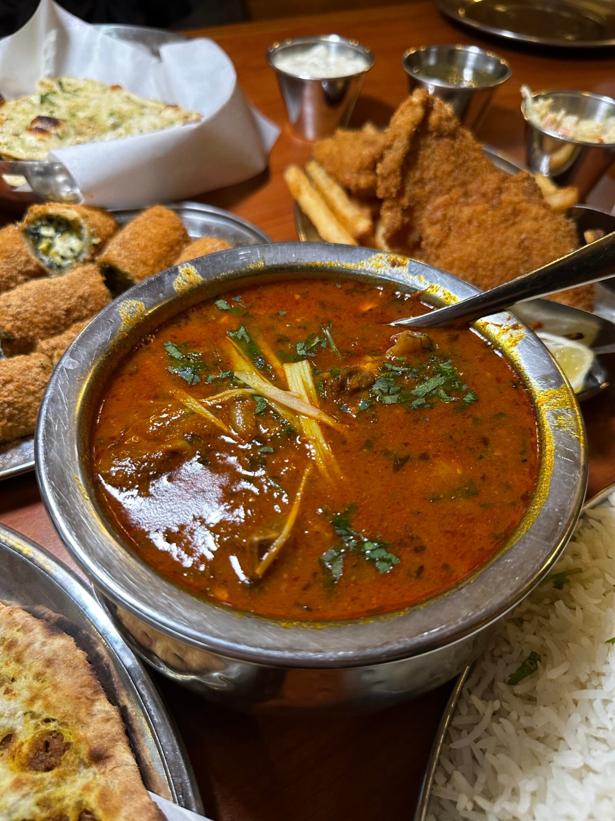 Their Goat curry use an entire goat, not just thigh meat, which is more common. Therefore this dish has limited quantities available daily, and when it is sold out, they are out. The stew was more like a soup, with a runnier broth, whereas I wanted and expected a thicker mix to be able to dip all our naan below into.