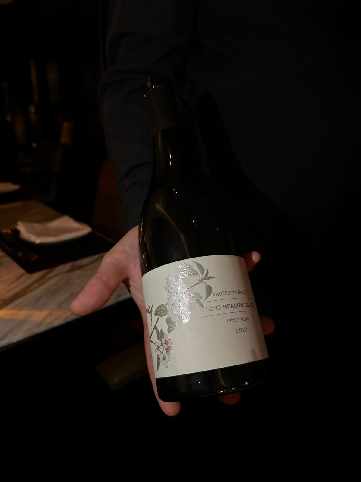 For wine we had the “2018 long meadow ranch. pinot noir . anderson valley . california . usa”. A lighter red with the flavour of ripe berries.