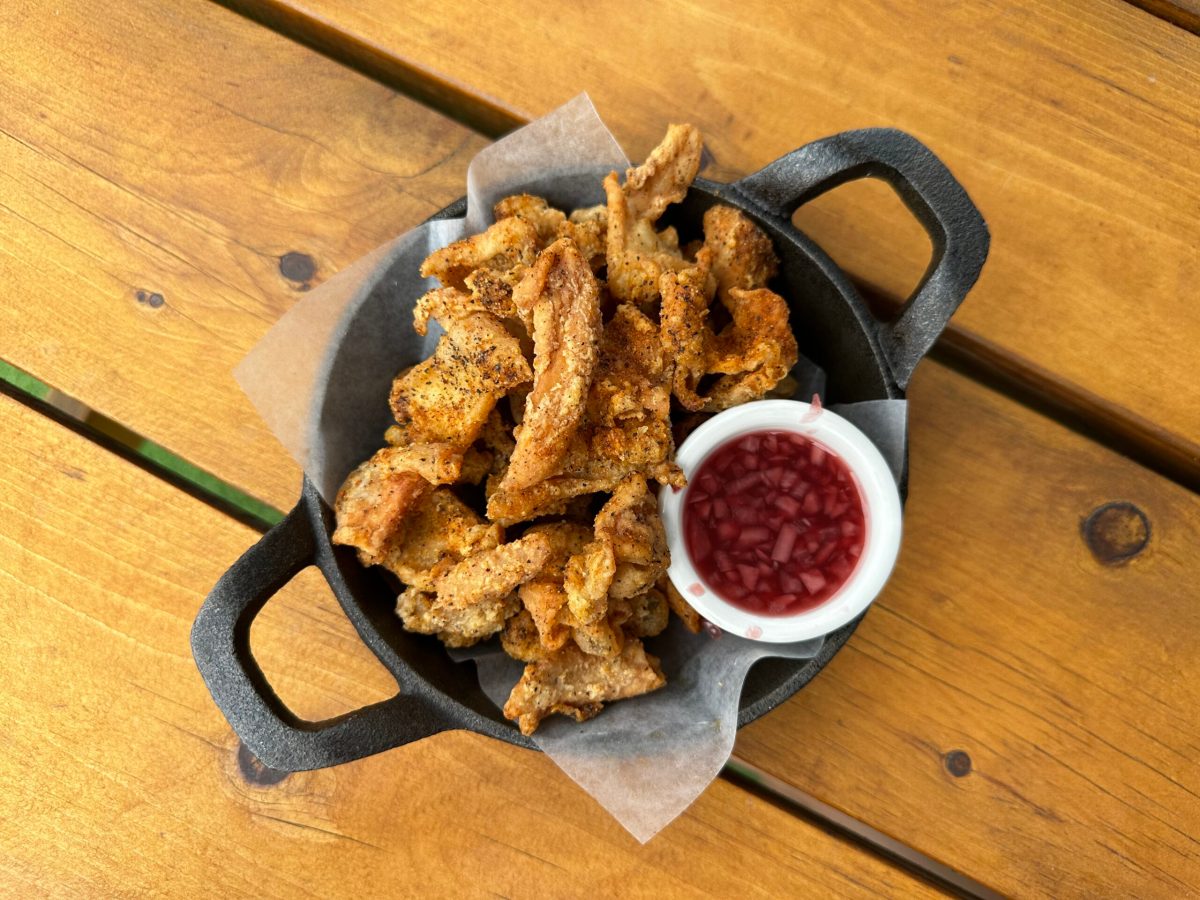 The Chicken Chicharons were a fun one to pair with beer. Fried chicken skin dredged in their hot mumma spice for a chilli kick. Each chip was thin given how lean the chicken used was. Ashy in the mouth and crunchy to finish.