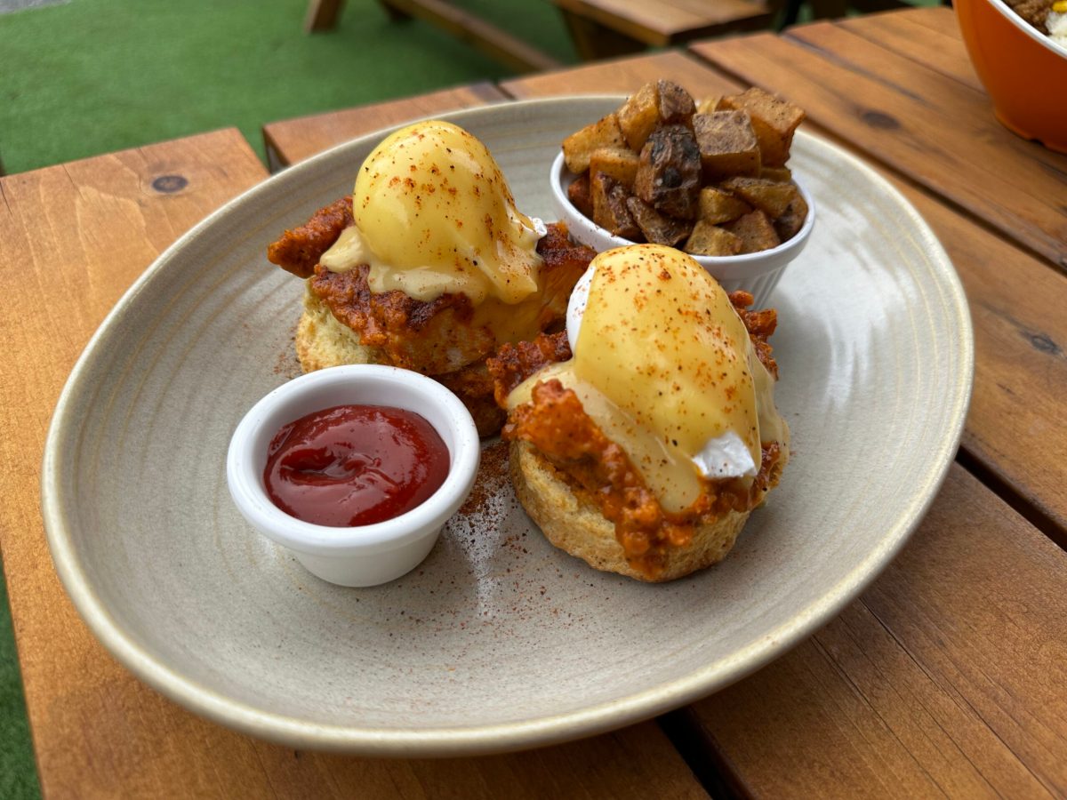 The Hot Mumma Chicken Benny featured the same slightly tingly, spicy chilli seasoning as we have been having above, but in a Benny. Crispy chicken breast, hot mumma sauce, biscuit, 2 poached eggs, hollandaise, and hashbrowns. The mumma seasoning was more pronounced here, but it did come across more as Frank’s red hot with its acidity and mild heat.