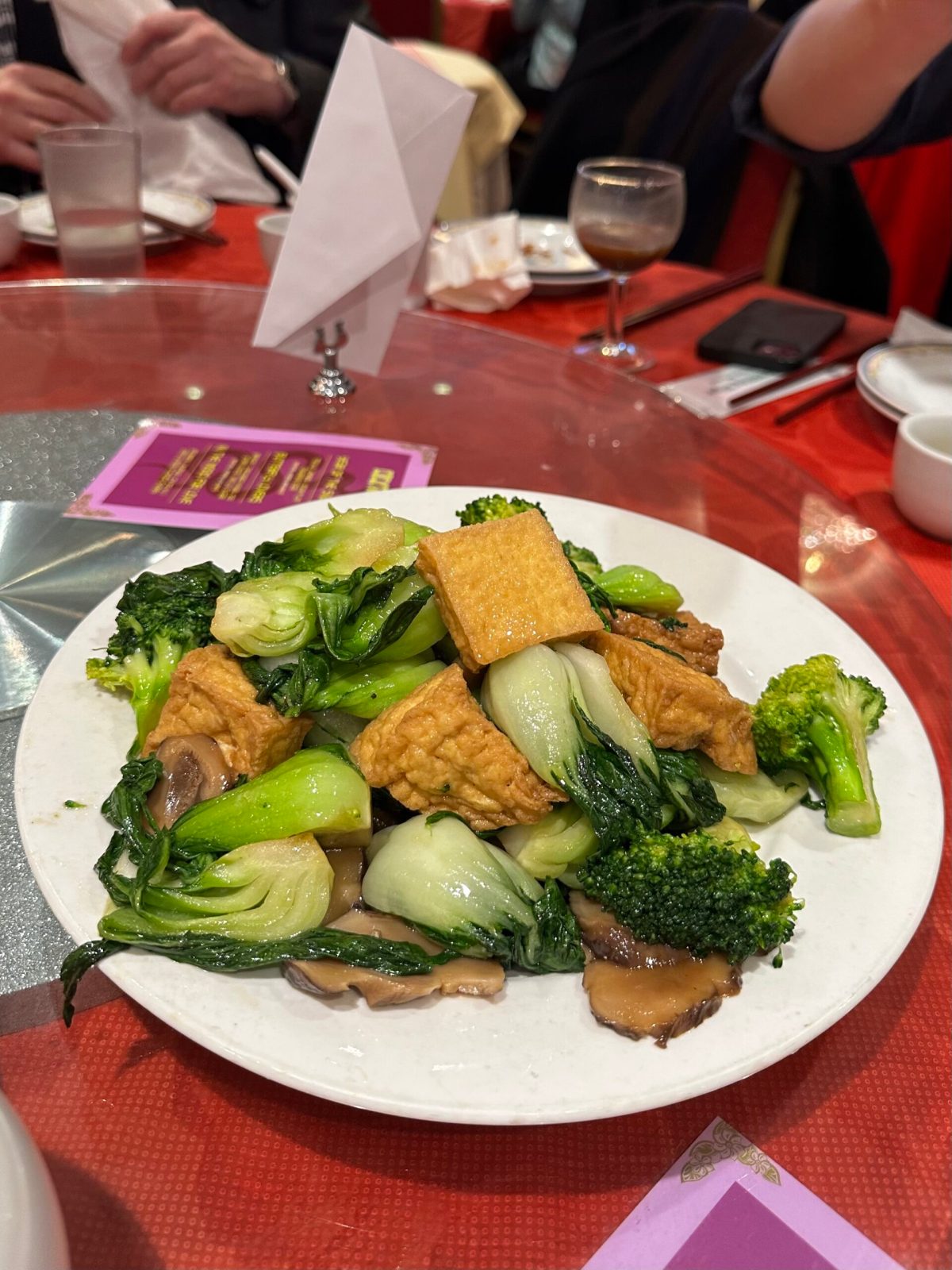 Our third course was a vegetarian dish of fried tofu, broccoli, mushroom, and baby bok choy. Each had a slimey coating of starch, remaining the veggie’s soft and crispy mixed texture. However, as is this was a little dull and we had to ask for a side of chilli oil for some kick.