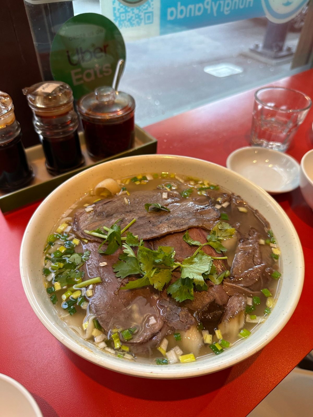 With each noodle order you can choose the type of noodles you want. So with our Lanzhou beef soup noodles we went with the blade cutting noodles, that we watched them prepare from behind the window of our bar seat.