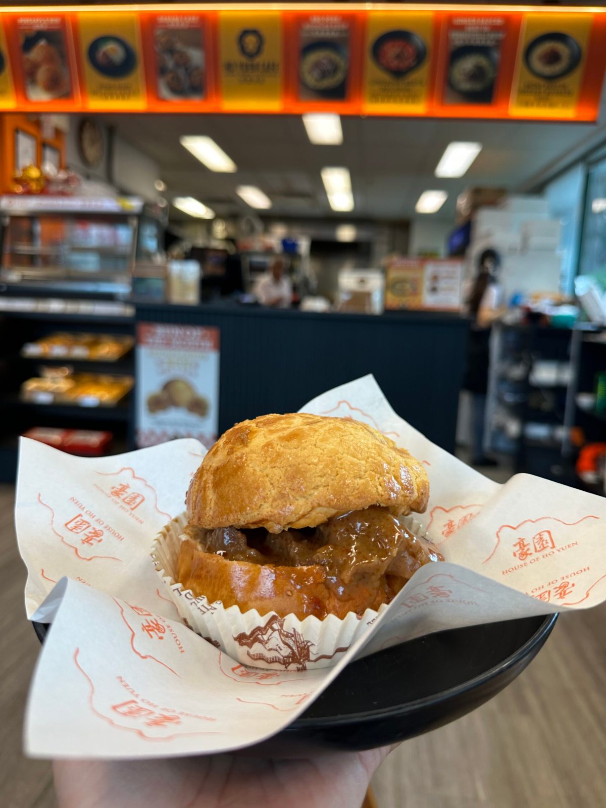 They typically use a smaller, four bite pineapple bun to sandwich satay beef, but they ran out of the minis so we got it as a full sized bun. This is the same beef used in the noodles above, where the pineapple bun is the star with its iconic crispy topping. There was a nice similarity of sweet and savoury-sweet, between bun and meat. I was not expecting the texture of crumbly bun and sinew-y meat to jibe so well.