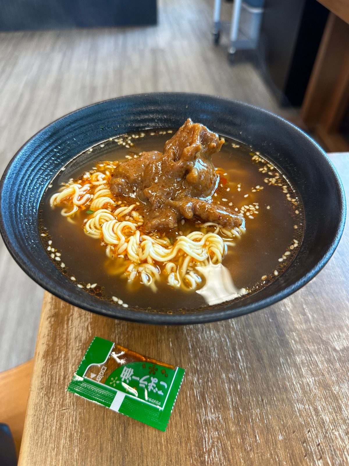 Tender and fatty pieces of beef that is enjoyable to chew through, paired with chewy noodles with a starchy texture. The flavour comes from the soup that reminded me of beef brisket in richness and satisfaction.