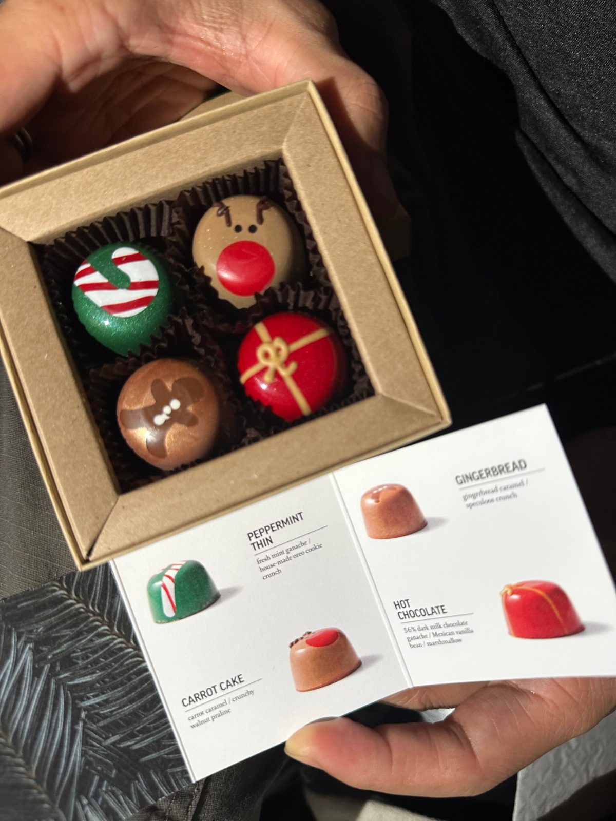 If you can only pick one item, let it be their Christmas-Themed Chocolate Strawberries. These are the best chocolate covered strawberries we have ever had. The strawberries are always sweet and juicy, and their shell of milk chocolate offers a nice crunch to every bite. A perfect balance of both that still allows the fragrance of strawberry to shine.