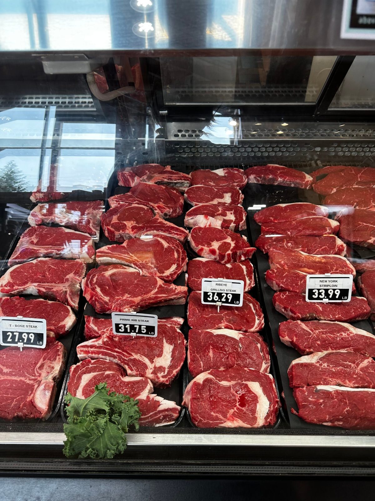 The larger halves of the cow are then butchered down to size in the back of their meat market. Where everything is craved and hacked down to strip loin, t-bone, ribeye cuts, etc.