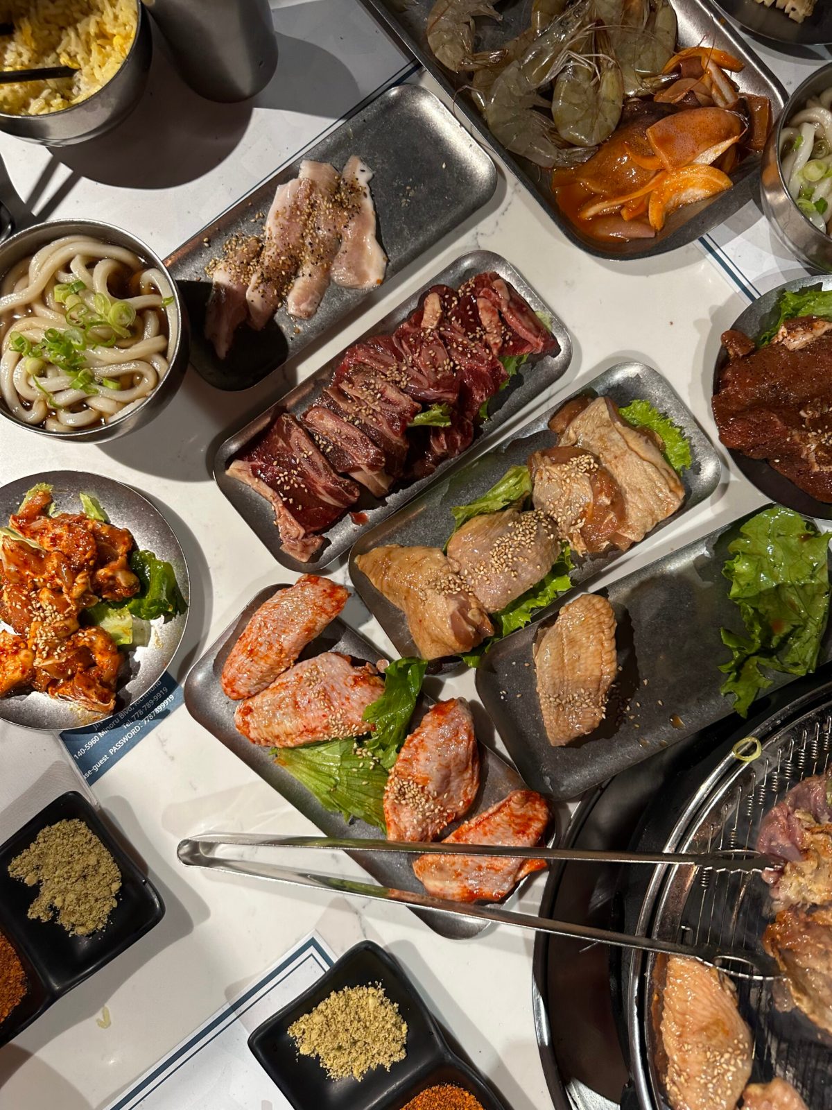 For those with smaller appetites the classic is plenty with 7 different meat options between chicken, beef, and pork; plus a slew of vegetables, noodles, and rice for sides. Different seasoning for both pork and beef belly, beef tongue, chicken thighs, and pork shoulder.