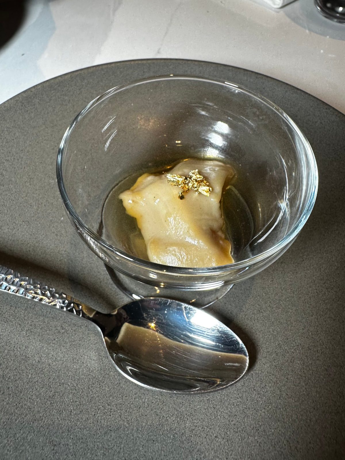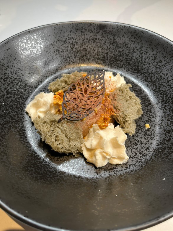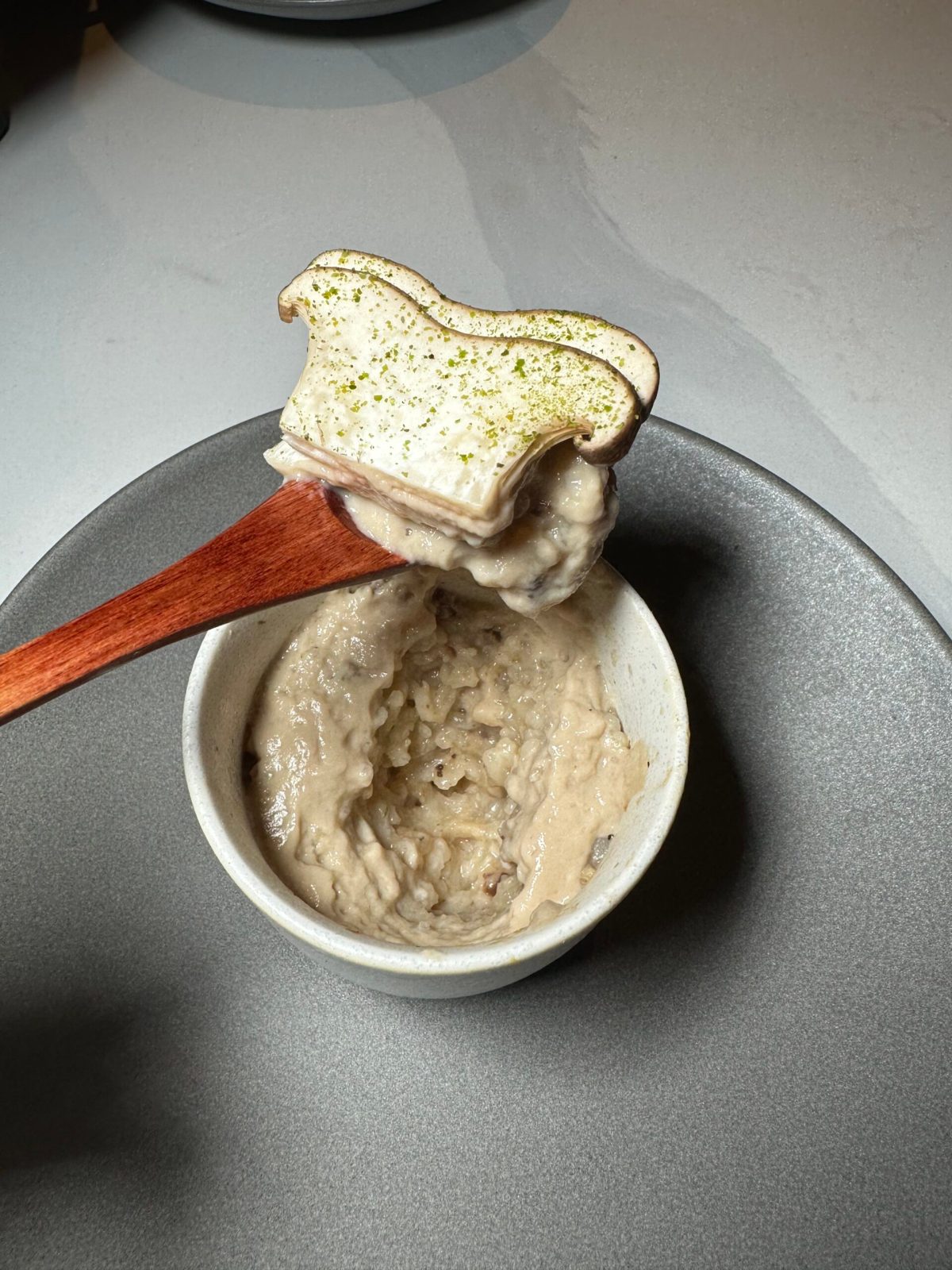 The Chef’s Tasting Menu started with “Jook” a mushroom and rice porridge with earthy espuma. More chunky and starchy like risotto that a more water-based porridge. A little earthy and bitter, this was a heavier start and felt better suited in between the seafood course, leading into a meat one.