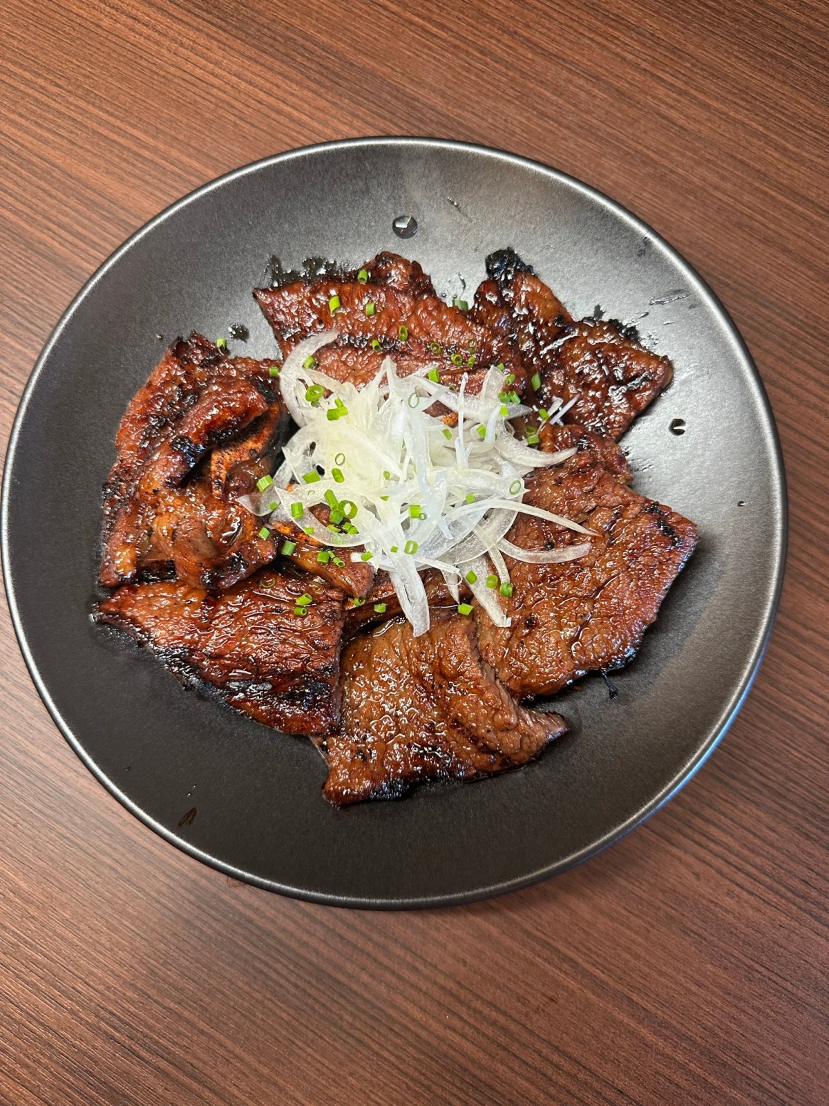 The Kalbi was a group favourite. Six pieces to an order, this is grilled beef short ribs marinated in sweet and savoury soy sauce, topped with pickled onion. You could taste the quality of the beef used. Each cut had an even amount of fat and lean meat. Marinated and prepared with a sweet salty char, the kind you lick your fingers clean of. Once again some rice would have helped to really highlight the texture of the meat, and would have been the perfect base.