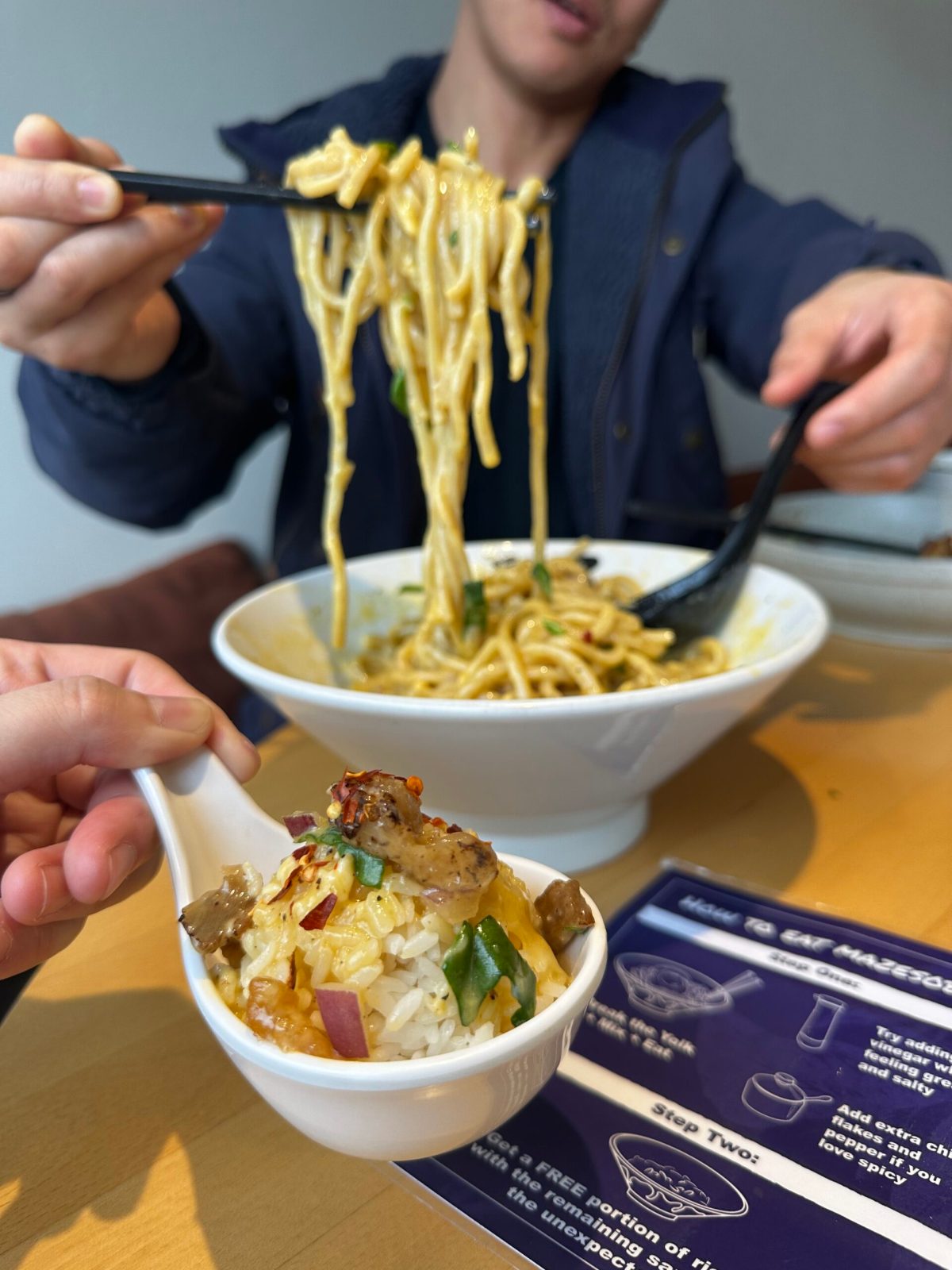 And you can also ask for a serving of rice on the side, a small scoop that is included with each mazesoba bowl. All the saucy bits act as a gravy for the rice, thus changing the taste and mouthfeel.