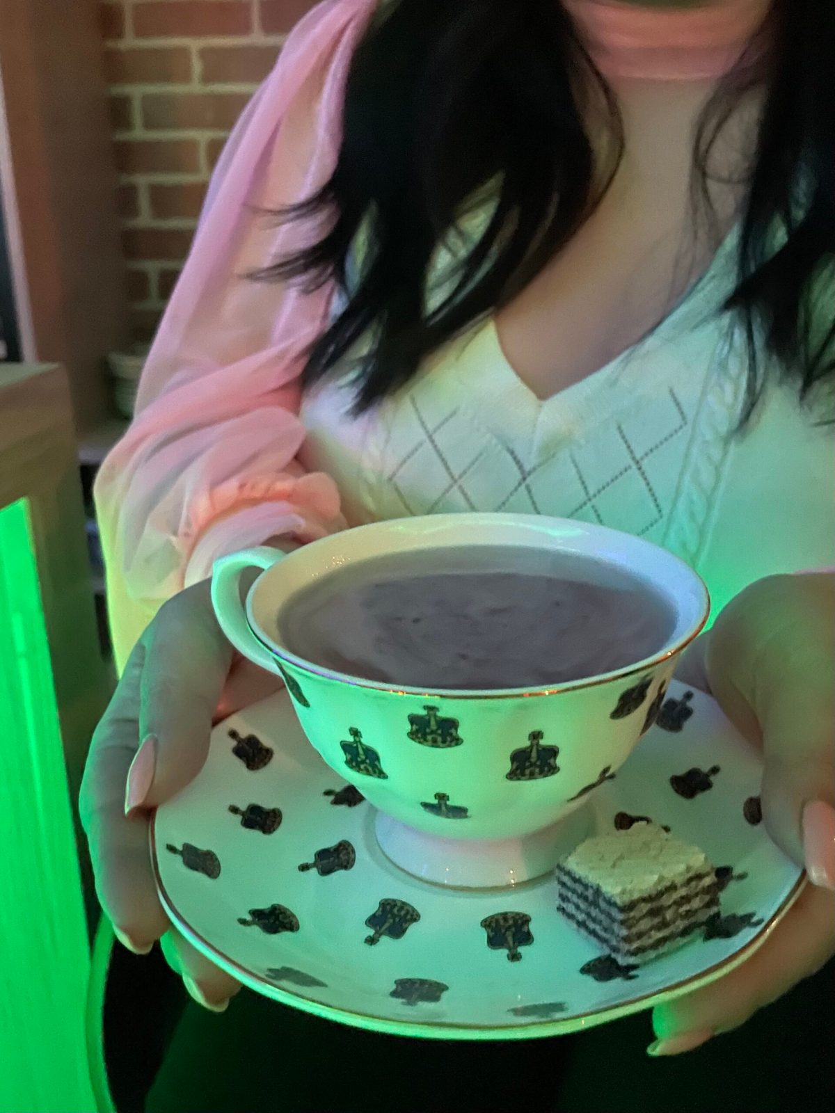 Where Jean Claude gets a bucket, Molly Ringwald gets a tea cup and saucer and she approves; in her inspired Molly Ringwald Approves cocktail. Prepared with Nakano-rose Umeshu, soho, empress gin, yuzu juice, and rose soda; and served with a mini chocolate wafer cookie on the side.