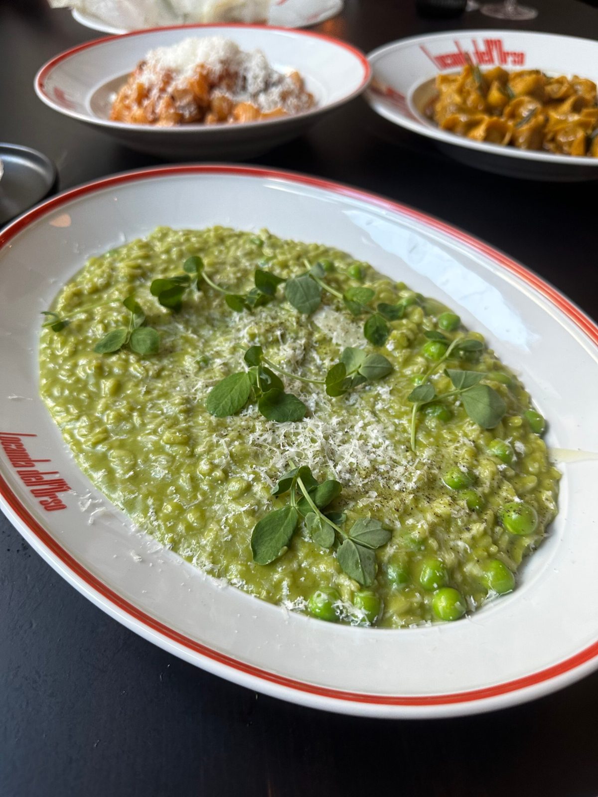The most filling option was the Risotto dell’Orso. Another vegetarian option with Acquerello Carnaroli Rice, peas, stinging nettle pistou, and pecorino romano. You definitely don’t miss the nettle, it gave the familiar a bitter kick. Here, I would have liked some lemon to balance it out with acidity. I was excited when I saw the peas, but found them undercooked and chalky. A hardened texture that distracted from the otherwise softened mass risotto. Shame, as this would have been my favourite dish of the course otherwise.