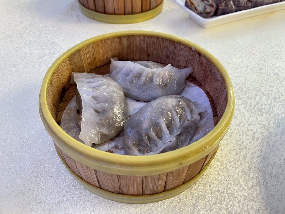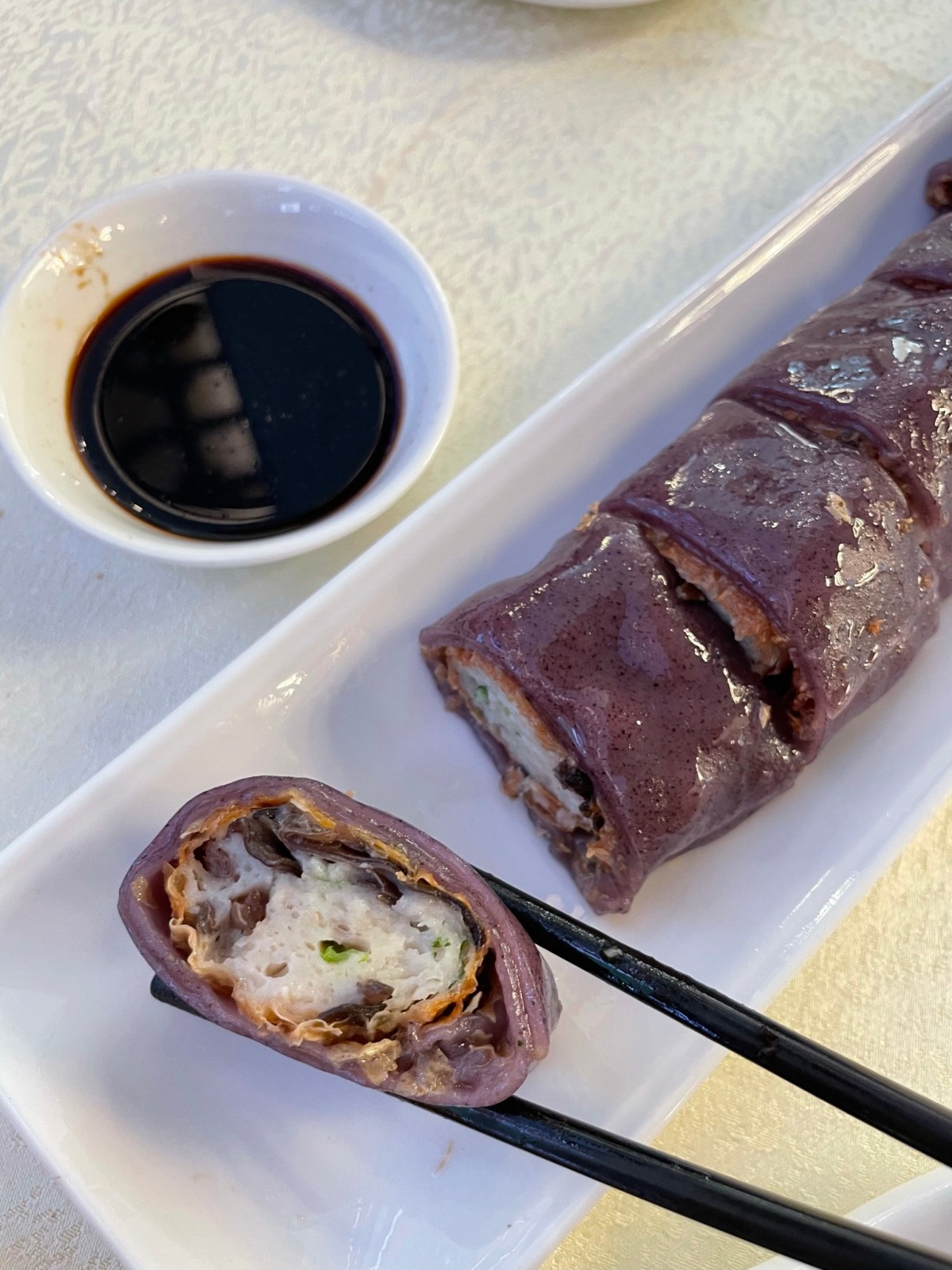 I liked the uniqueness of the “Steamed purple rice rolls with fish paste and deep fried bean curd”. It was striking in colour, but interesting in taste. The seasoning of the fish cake gave things an herbal tone that I didn’t quite enjoy fully. I didn’t try it, but think I would have preferred the other purple steam rice roll with “mixed sauce” instead.
