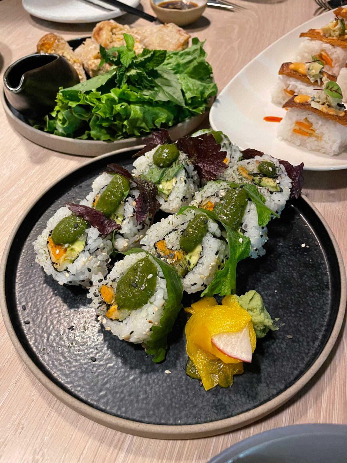 Nightshade has a decent selection of sushi. Not just one roll, but 4 vegan rolls, each with its own profile and flavour; not just cucumber and avocado, like you get elsewhere.