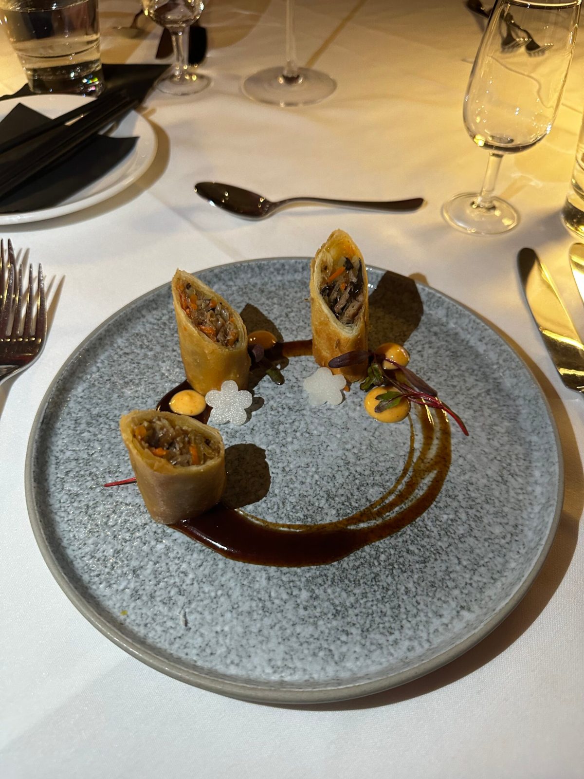 Our Glowbal Culinary Dinner began with the best spring roll I have ever had. An amuse-bouche of Confit Duck Spring Roll with Hoisin Sauce, and Sriracha Aioli. Another stunning presentation and what looked like 1.5 spring rolls all together. Perfectly crispy shell, juicy duck meat centre, with plenty of sauce to dip into. Familiar flavours given and air of sophistication by the talented kitchen.