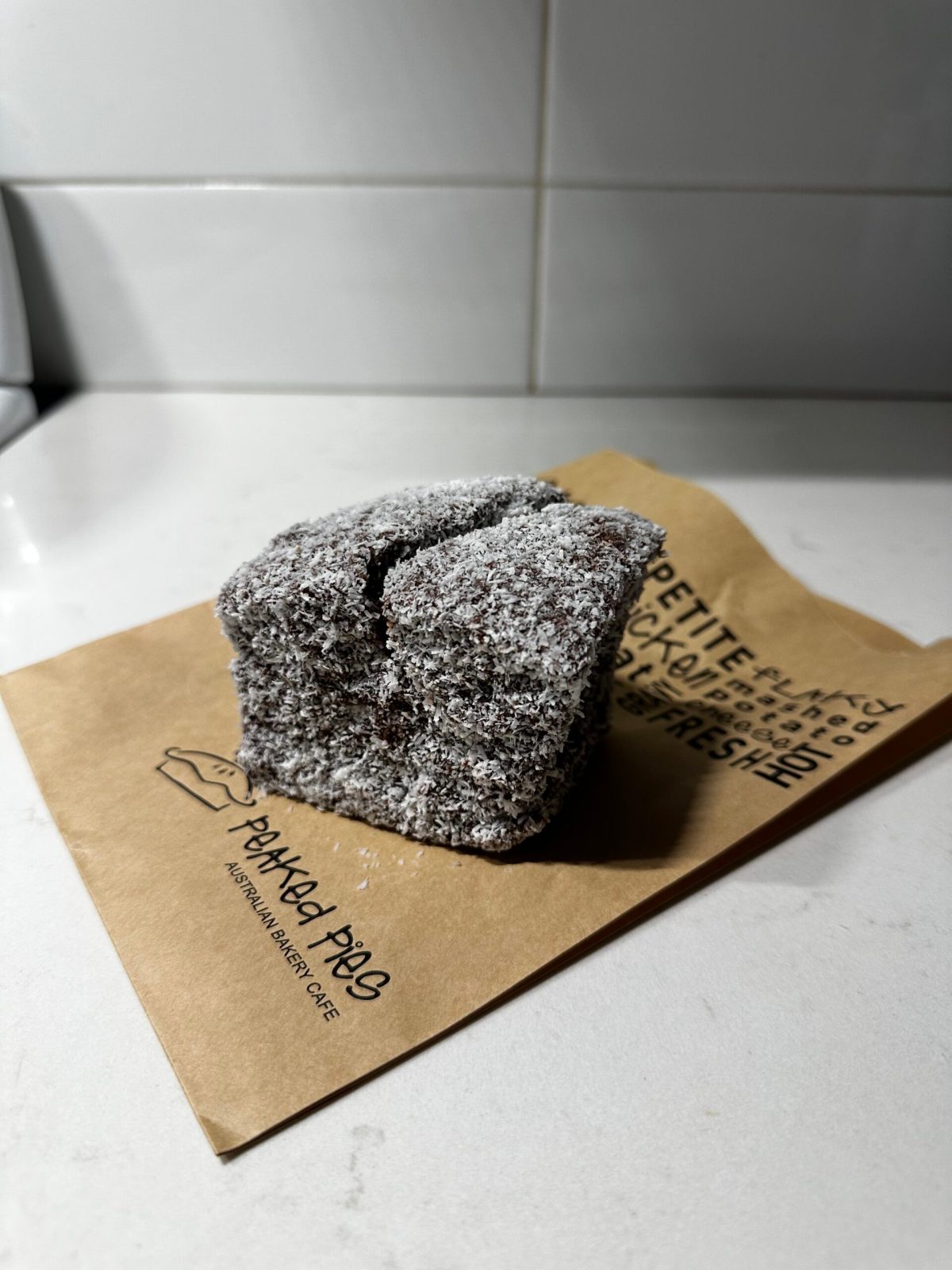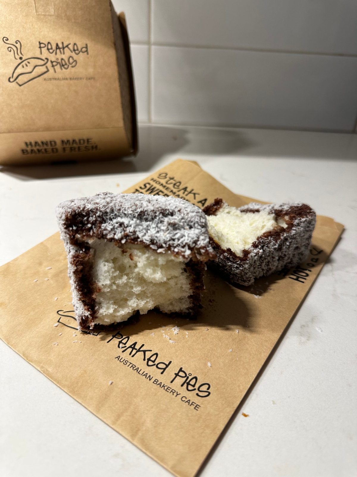 And in the dessert showcase the Lamington drew us in. A square block of a cake with a unique enough name to have me inquiring about it with the clerk. This is a traditional Australian cake.Â