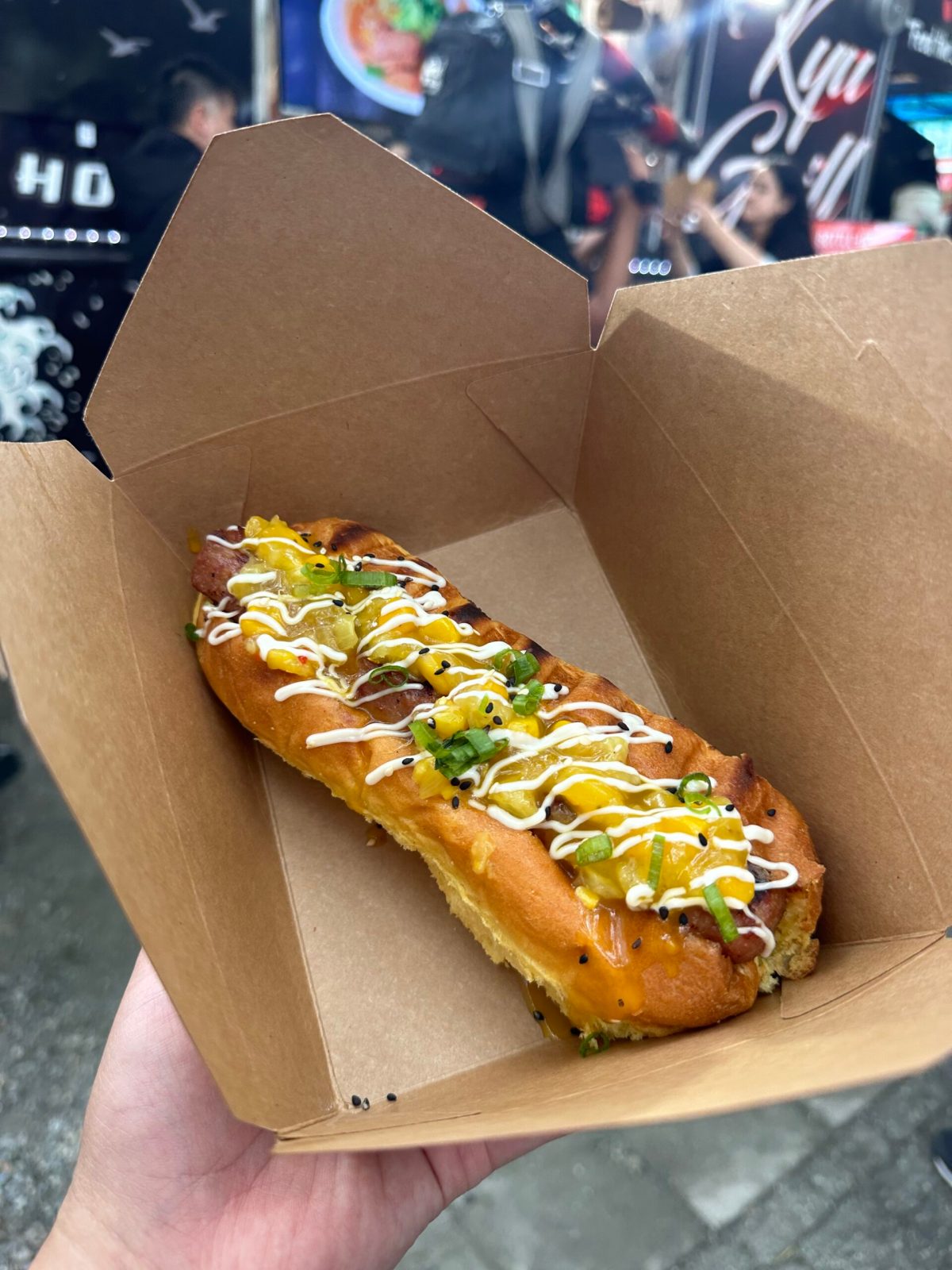 Today we were trying their best selling birria tacos and their new mango chicken dog. But if I had my choice we would have tried there Tom yum poutine pictured with lobster or their Oko Nori Spicy Hawaiian Shrimp Fries.