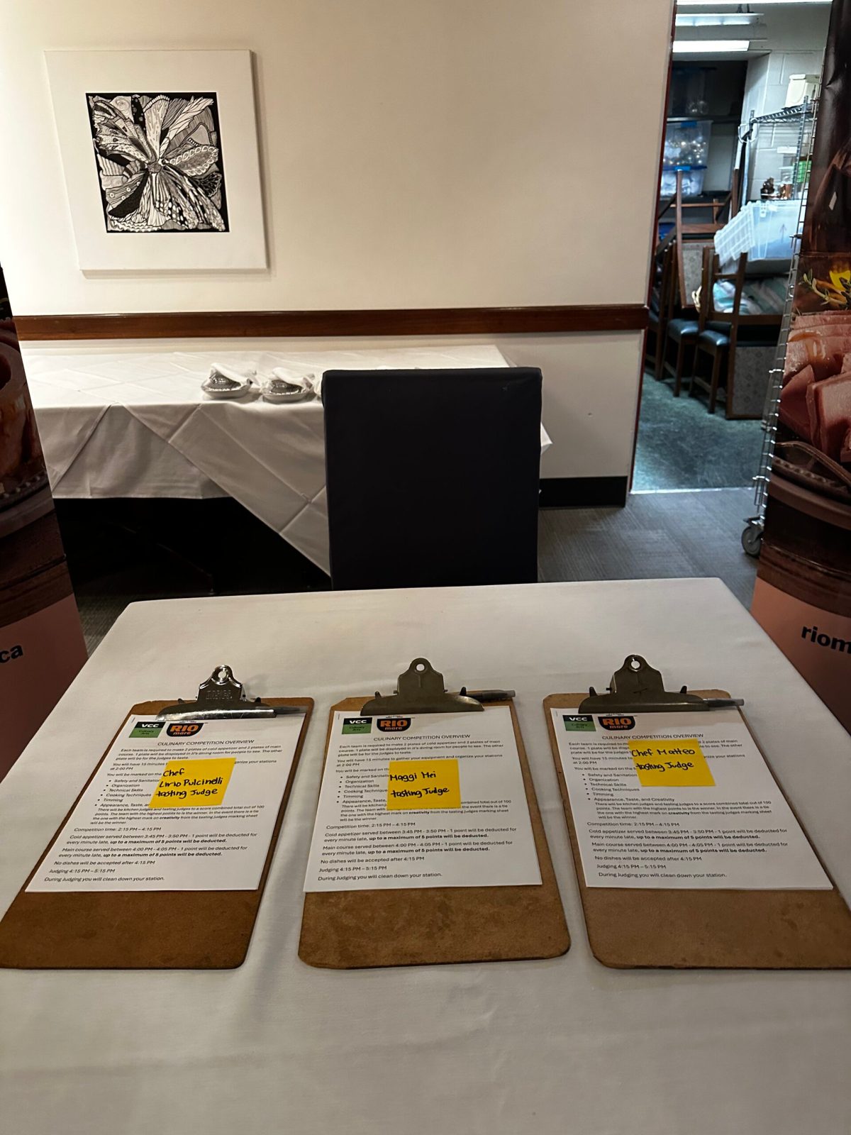 I would be one of two tasting judges, scoring them alongside two kitchen judges from VCC. My responsibility as judge was try each dish and score it based on appearance, taste, creativity, and how cohesive the two courses were to one another. Additional factors to consider were appropriate garnish with ideal amount and quality, appropriate portion size, ideal balance of shapes and colours, balance in flavour, if the accompaniments complimented and enhanced the main item, if the dishes were served at the right temperature, and if all components were cooked perfectly.