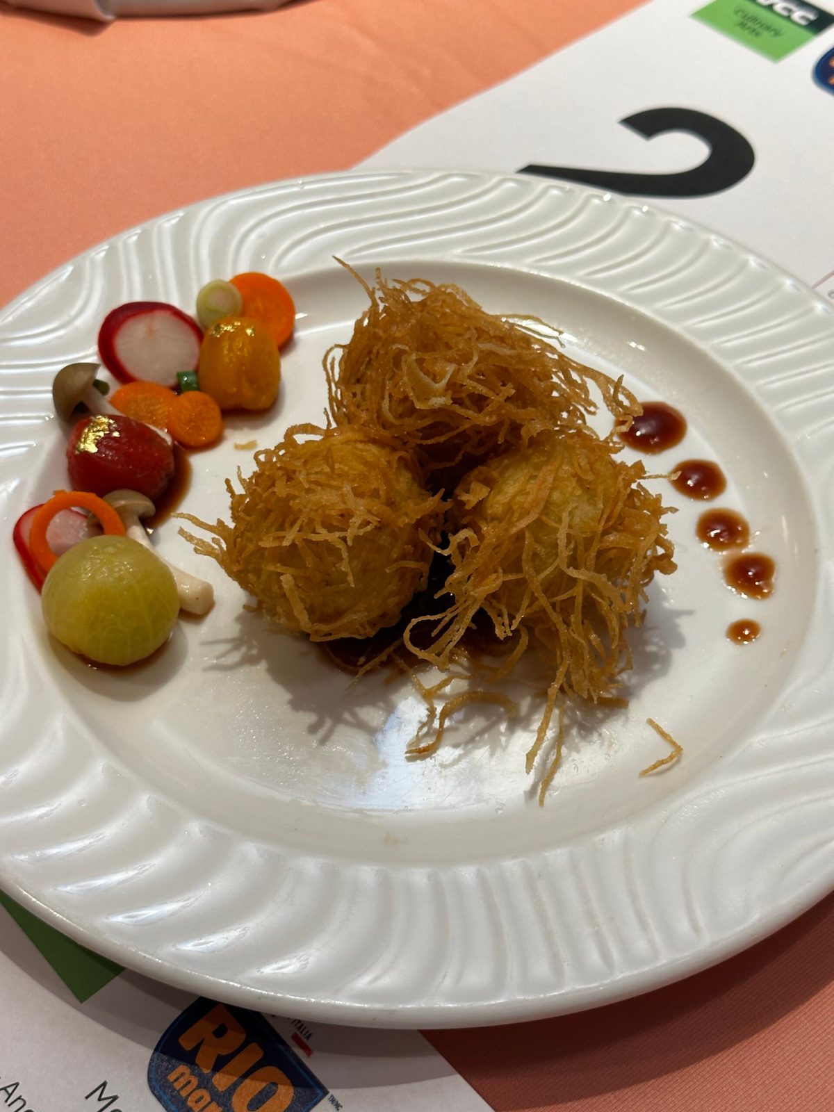 Each chef is asked to bring their personality and heritage onto the plate and not simply create Italian dishes from Italian tuna. Our two aspiring chefs spoke to their Asian backgrounds with Thai and Chinese influences. The first was a tuna cup, where you can see, taste, and feel the tuna. Much of the fishy flavour was washed with the full brightness of Thai chillies and citrus. A sweet, sour, and tangy mix that was harmonious and further along by the crisp of chopped fresh vegetable and a crunchy fried chip base. This was a colourful and fun appetizer in two bites.