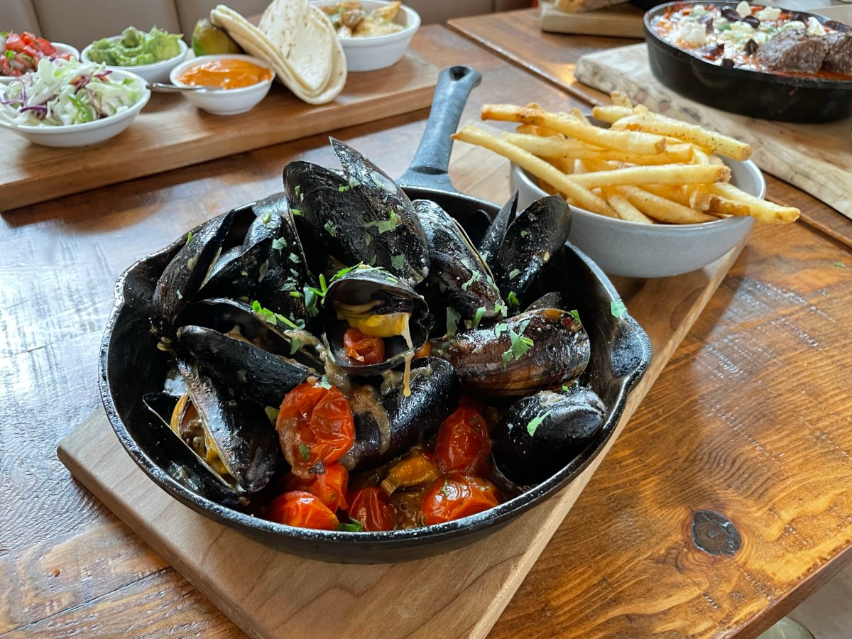 We all approved of the Braised Short Rib Hash. Like a beef poutine with slow-braised beef short ribs, crispy smashed potatoes, caramelized onions and wild mushrooms; topped with melted smoked cheddar and two sunnyside eggs. Served with char-grilled sourdough that we would use with the mussels above. There was nothing about this I didn’t not like. It hit comfort eating on the nose with all its familiar textural and flavourful components.