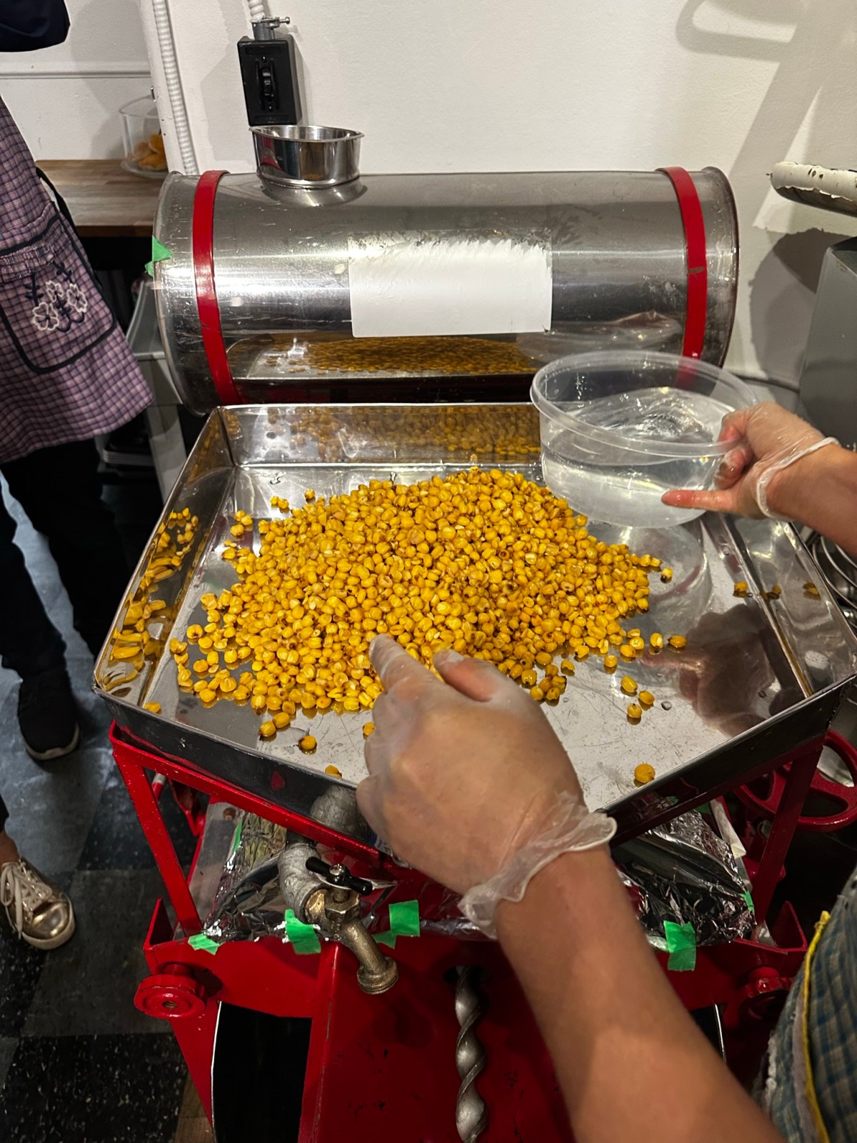 They spoke to the history and how the organic corn they use is sourced locally in BC. Delivered dried, the kernels are washed, cooked in water, then drained when it is time to make them into tamales.