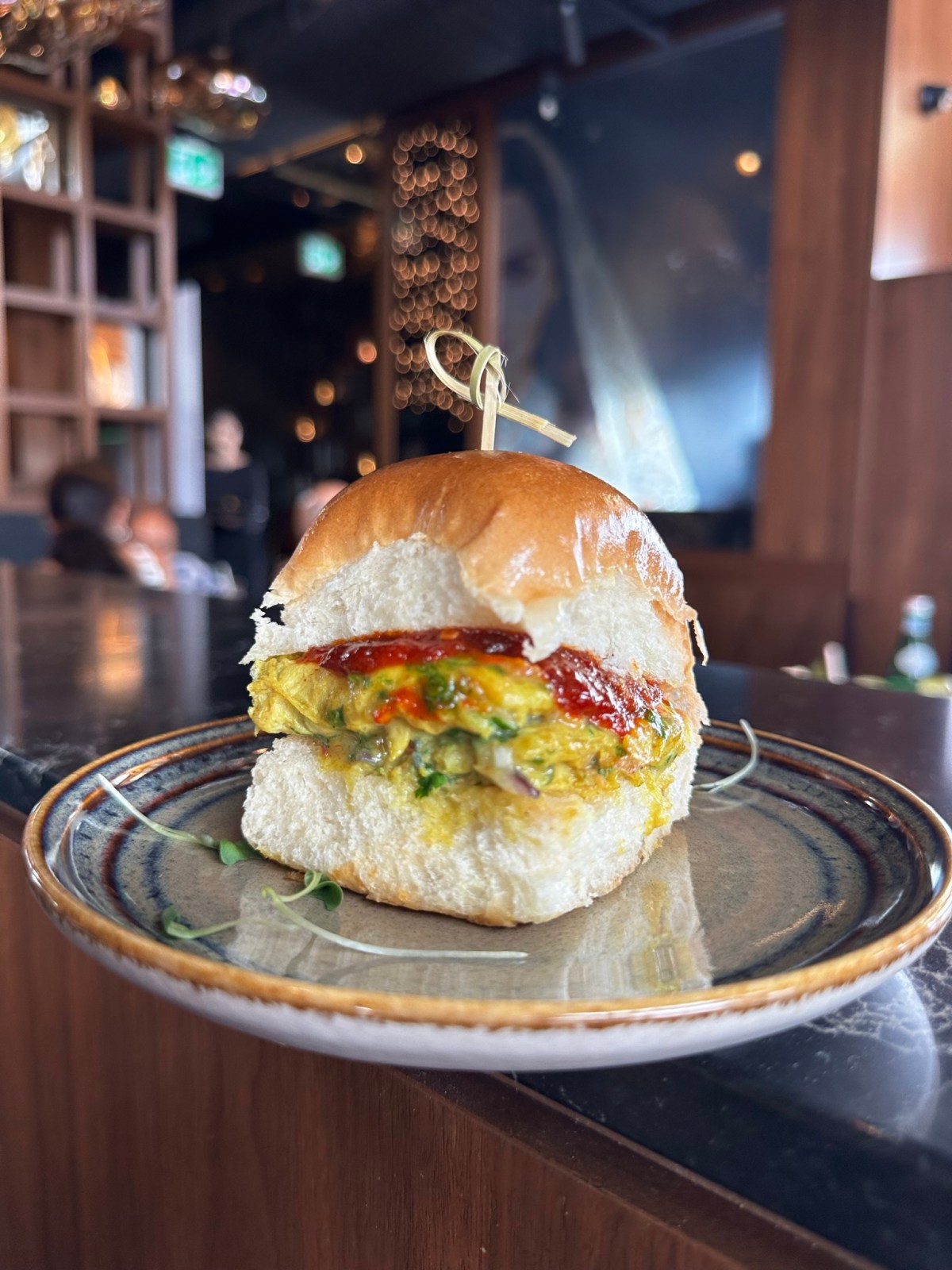 The Parsi Omlette Sando was a surprise. Not described as being spicy on the menu, it was a lot hotter than expected. Two egg omelette with chopped tomato, onions. coriander and a little cheese. This was soft egg and hard, dry bun. A freshly toasted buttermilk bread would have been nicer to pair with the soft fluffy omelette. This also wasn’t much to look at. As a full order I would have liked a side to flush this one out with a bit more. Maybe some potatoes or cauliflower for freshness and to offer a break.