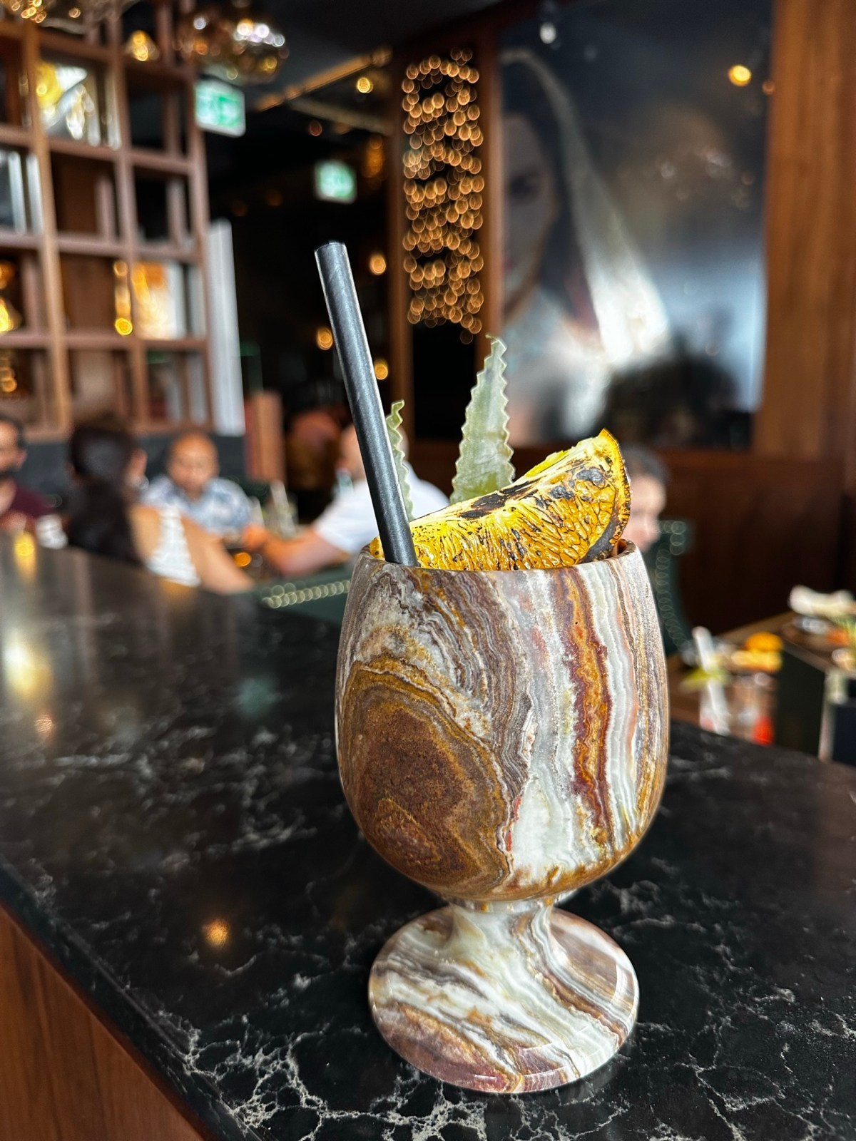 The Farm Bird was an interesting one, served in a weighted chalice. Roasted okra seeds infused Captain Morgan Spice Rum and cinnamon. Its taste reminded me of a breakfast oatmeal with liquified cinnamon, raisin, date, and toasted granola.