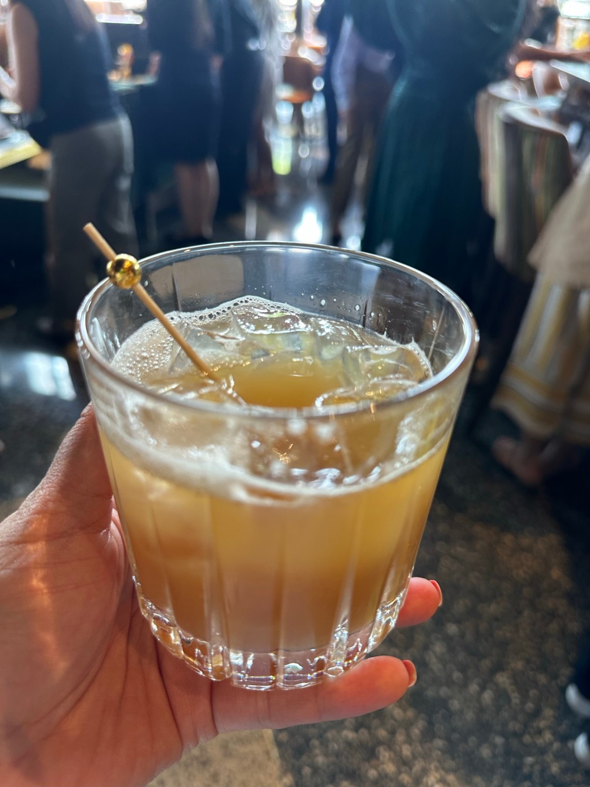The space was a party with pop music playing at the exterior. Within, the space is robust with dark wood green leathers, and golden blown glass orbs. It was chic and modern, a mismatch for the ”bistro” title and the more homey plates were we to have, but not the cocktails we started with.