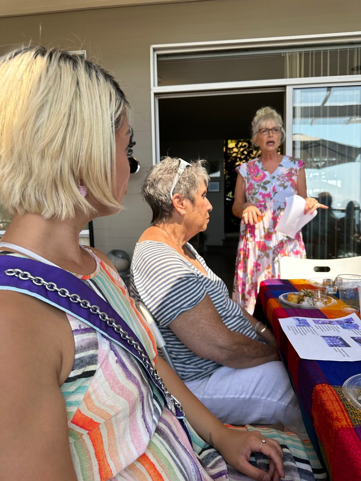 As guests gathered we took in the view from the back yard, admiring the mountains in the distance and the glisten of the pool on this clear sunny day. Although taking respite under the shade of beach umbrellas.