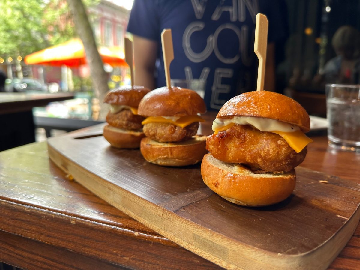 Another great dish to share between three is the Crispy Fishwich Sliders. Hand battered haddock, tartar sauce, and american cheese between a slider bun. I liked the fish as is, and probably would have enjoyed it more without the bun, to focus on the crispy fish and the excellent tang of the creamy tartar sauce.