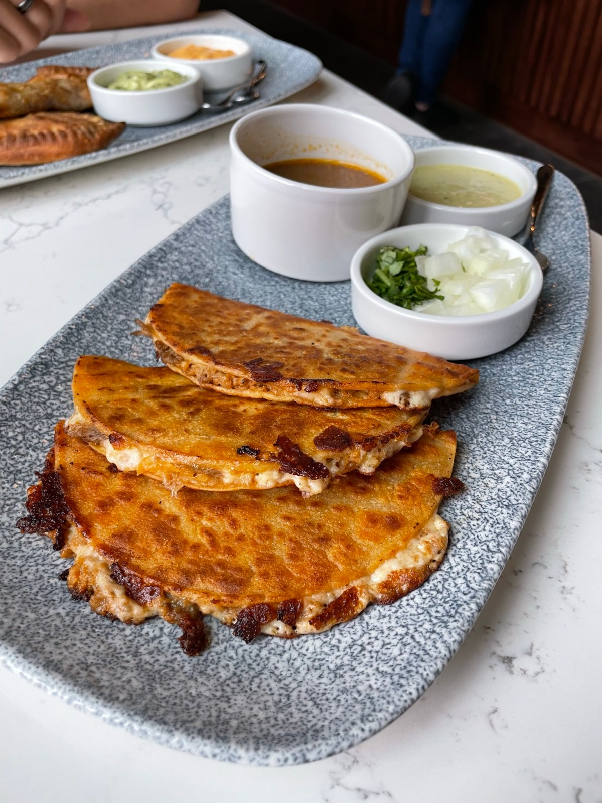To start, we went with the tacos and empanadas from off of the appetizer listing. The Duck and chorizo taco was done in a modern approach. Served crispy on the outside and melty with cheese on the inside. You could taste the quality fresh ingredients made here. It was not heavy or greasy despite the fattier proteins used. But did eat heavier without the balance the side sauces provided. They allowed you to customize your bites with either a rich, yet liquified beef consommé or a refreshing with the mildly chunky yuzu citrus salsa.