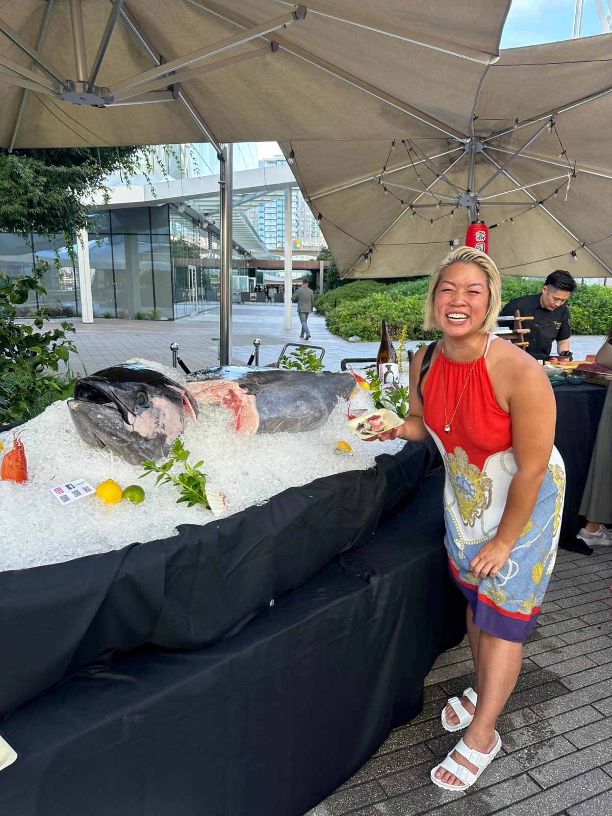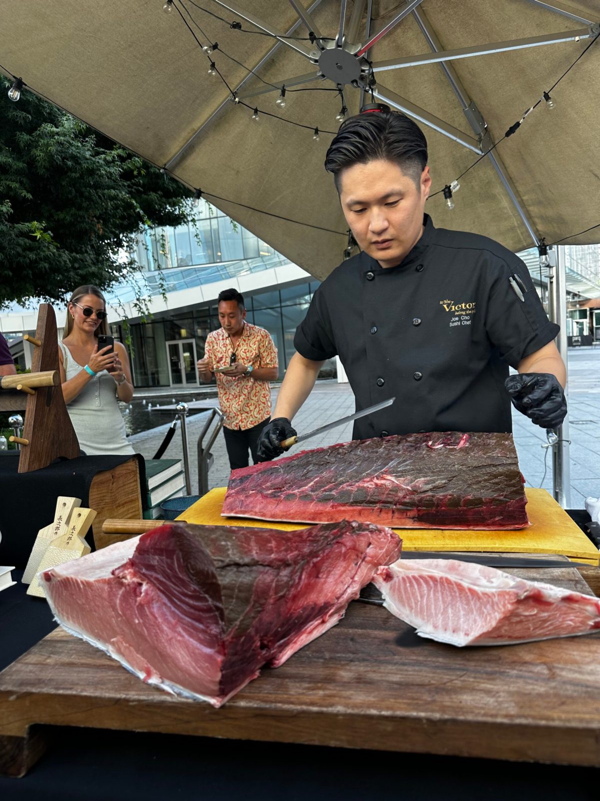 As good as the gourmet bites were, the real feature was the bluefin tuna butchering master class. A whole tuna was presented over smoking ice for gawking faces and snapping cameras. However, it was a tease as we did not get to try this one on display.