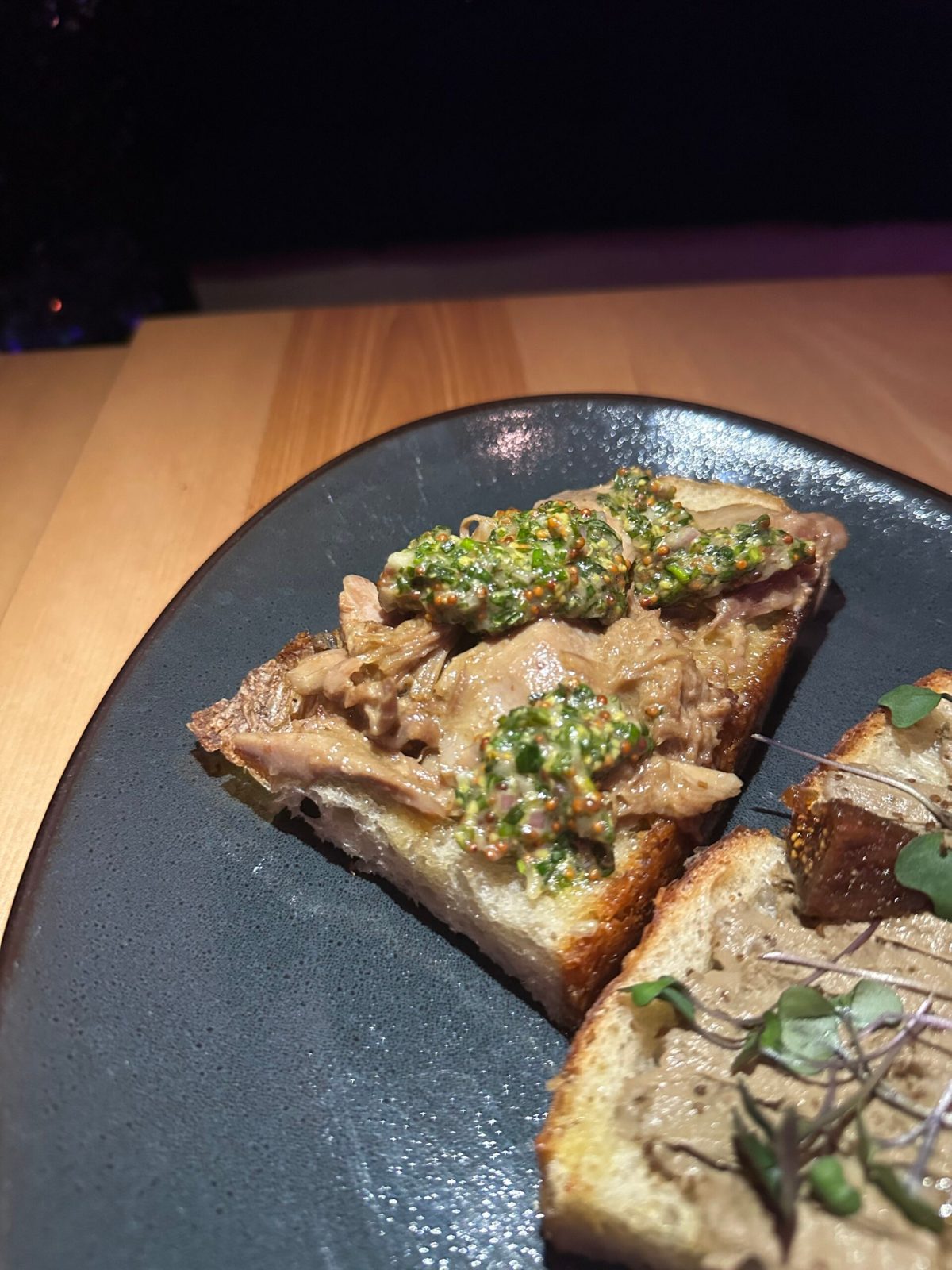 My favourite was the Pollo, sourdough spread thinly with a liver spread and topped with fig halves. I liked the combination so much that I wish there was an even sweet fruit to rich pate ratio for the ideal harmonious bite.