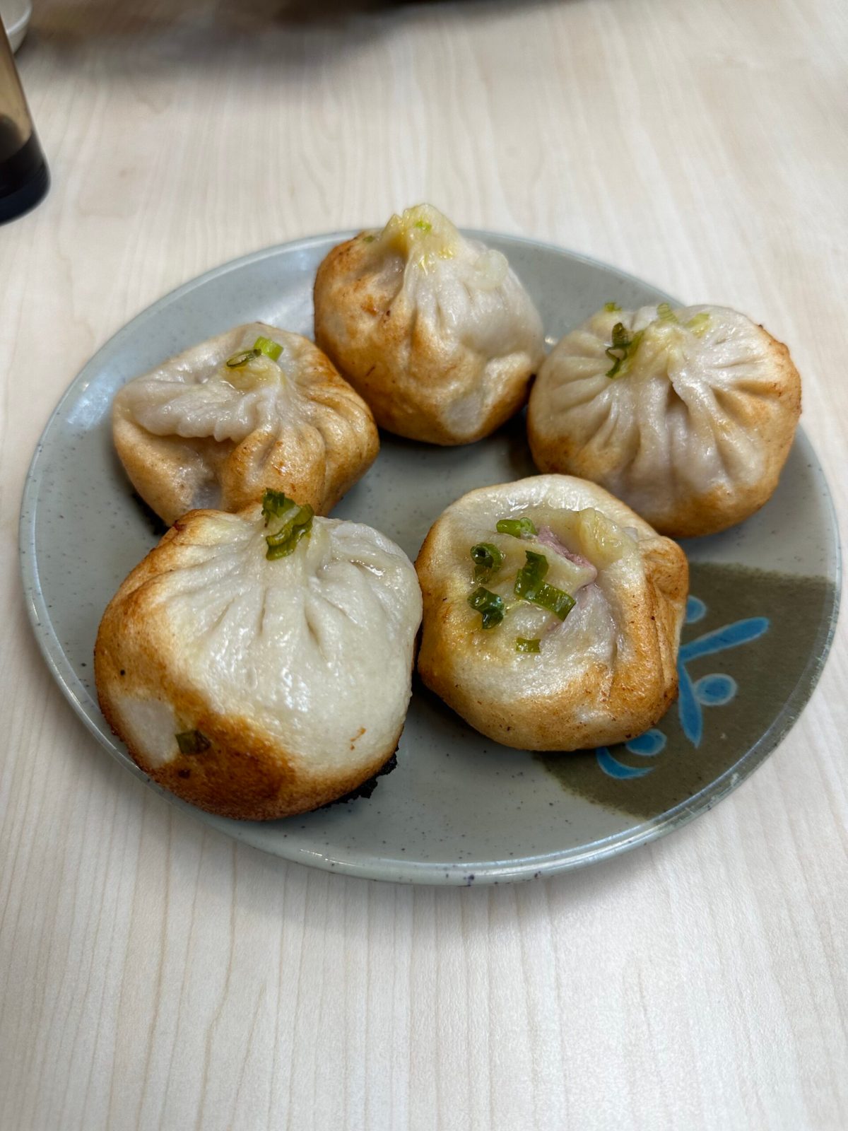 With the same filling of pork meat ball and broth is the Pan-fried pork buns, but instead of a soft wrapper, both meat and soup are held firm within a chewy white dough bun that is steamed and then pan fried for a gummy centre and a crispier, chewier exterior. If you like the flavours above, but what something a lot more heartier and filling this is it. Although similar, each hold their own, so we always have both.