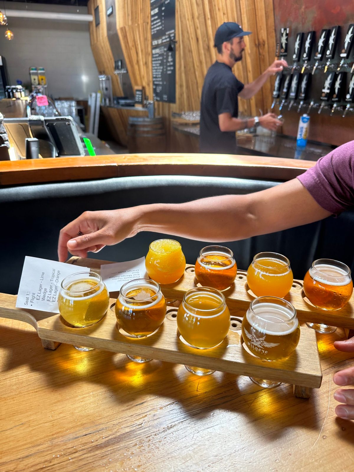 I, on the other hand am already familiar with their beers, having sampled a good assortment of them during the experience in which I won this dine-in opportunity from. Therefore knew I already liked their Czech Pilsner, so got that. Their pineapple radler caught my eye, which found a great citrusy start to our day. Similarly the kiwi mango sour sounded tantalizing, as something you don’t see often. Although, truthfully, I am not a fan of the tart nuance of a sour. However, I must say this wasn’t as puckering as I thought it would be. And because I have yet to see it anywhere else, I also got a taster of their beer slush option. This is one of their lagers topped with either a lemon or orange slush. I got the latter and found it a treat, similar in tone to the radler, but with a nice refreshing icy, cool.